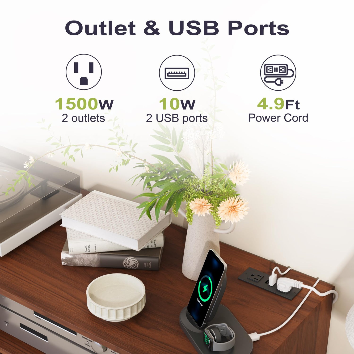 - 【Open Shelf & Built-in Outlet】- The record stand with power socket has 2 built-in USB ports and 2 standard sockets, which can conveniently power your record player and other devices. There are also cable holes for convenient storage of media cables, which truly combines style and functionality