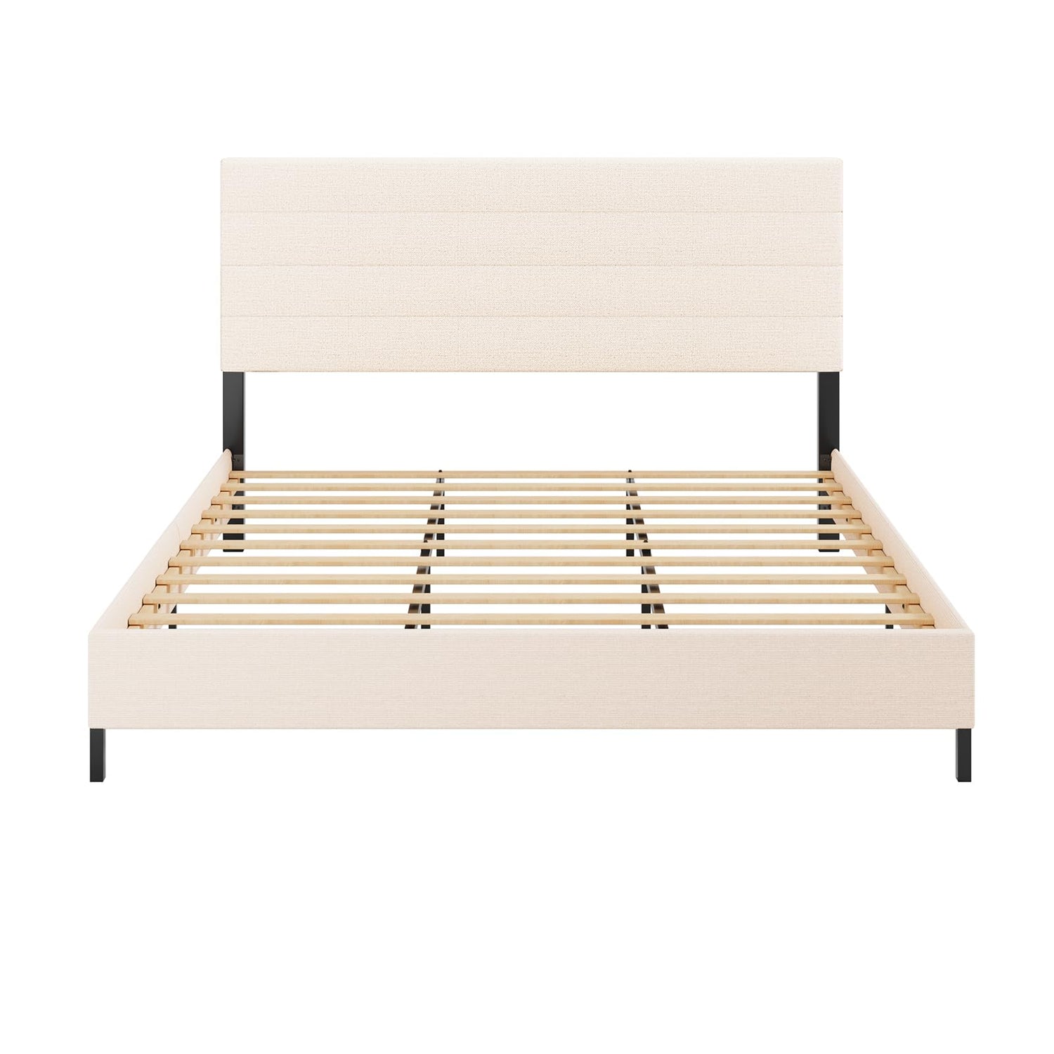 Furnihome Modern King Bed Frame with Adjustable Linen Headboard and Wooden Slats in Beige