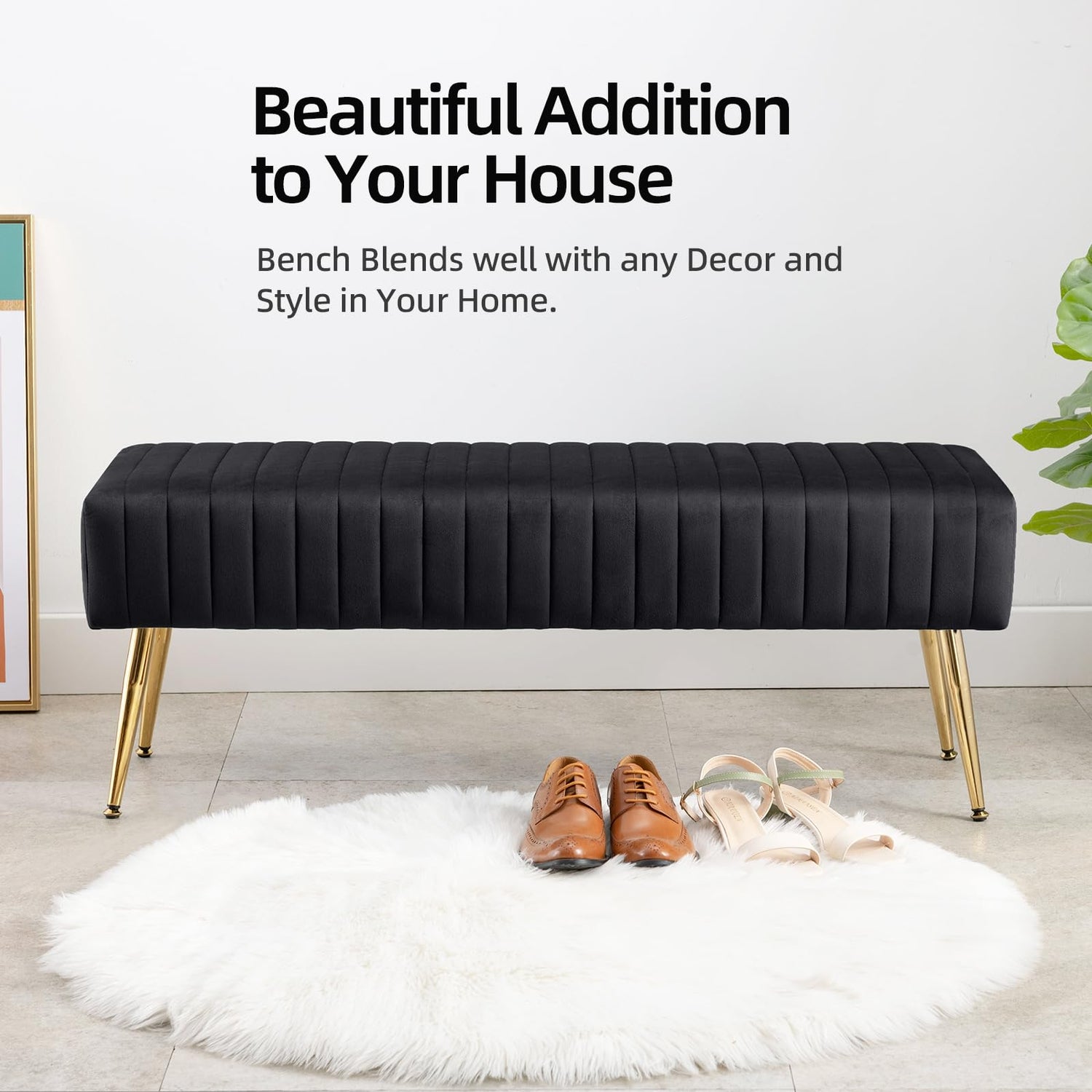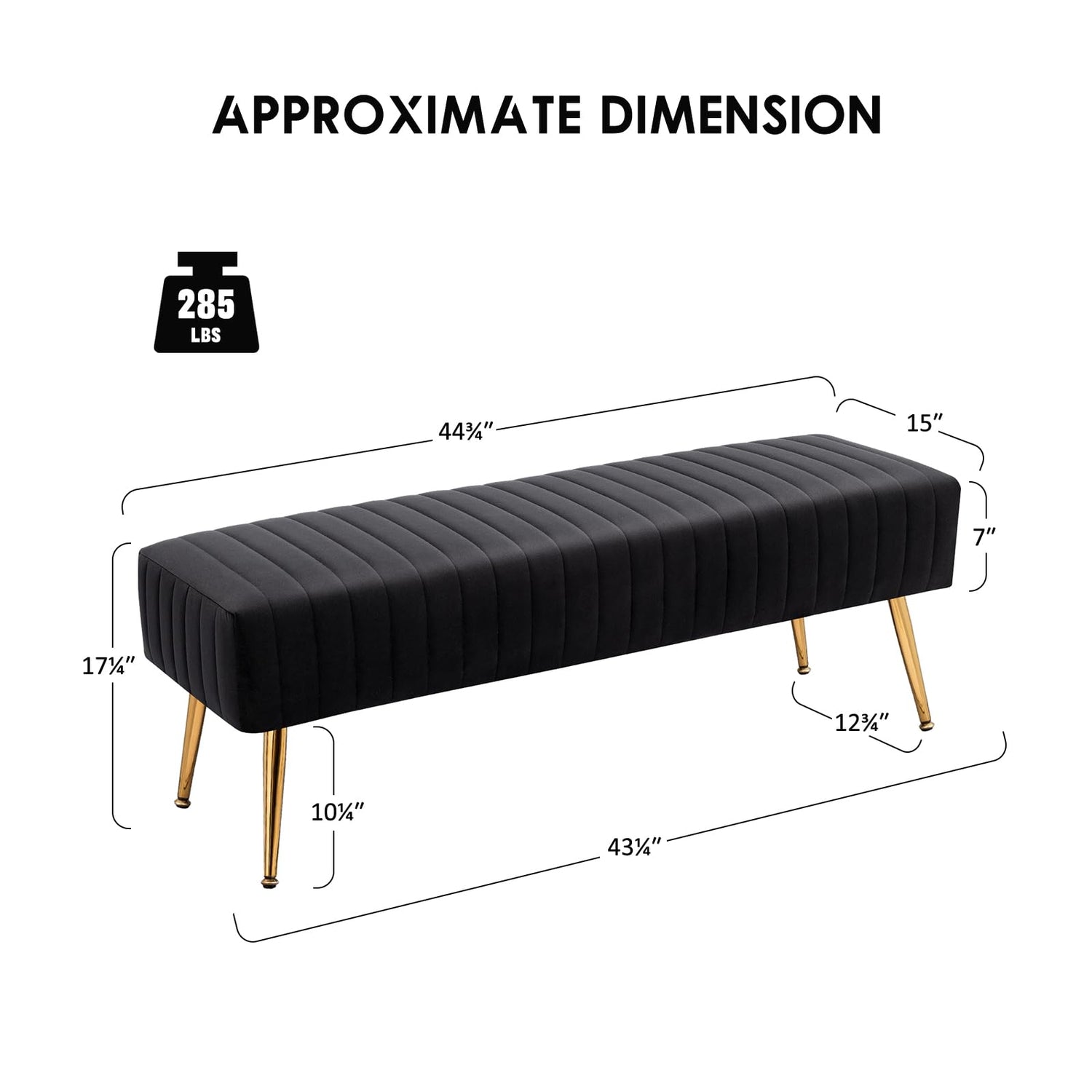 Furniliving 44 Inch Bedroom Bench, Upholstered Tufted Striped Fabric Ottoman Benches with X-Shaped Metal Legs for Living Room, Entryway Solid Wood Indoor Bench for Foyer (Black)