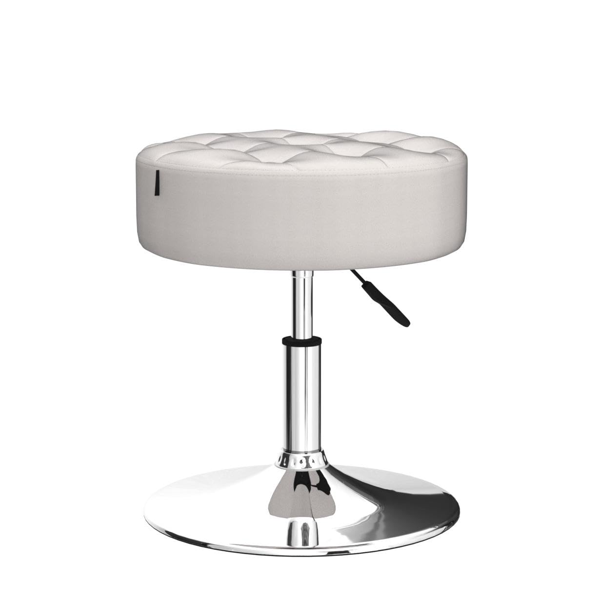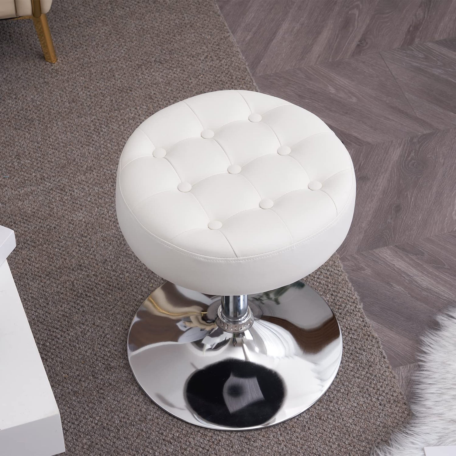 Furniliving Mid-Century Tufted Adjustable Swivel Makeup Ottoman Stool; Modern Big Size Round Vanity Stool Chair for Bedroom Living Room (White)