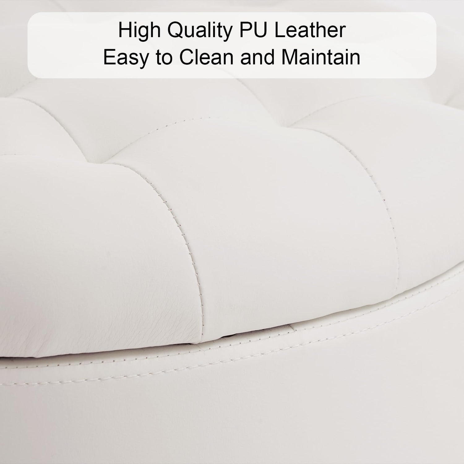 Furniliving Upholstered Button Tufted Round Ottoman, PU Storage Ottoman Round, Removable Lid Convenient Footstools, Classic Ottoman with Storage for Vanity, Nursery Room,IvoryWhite