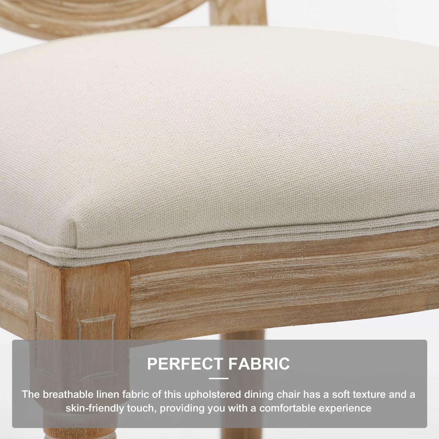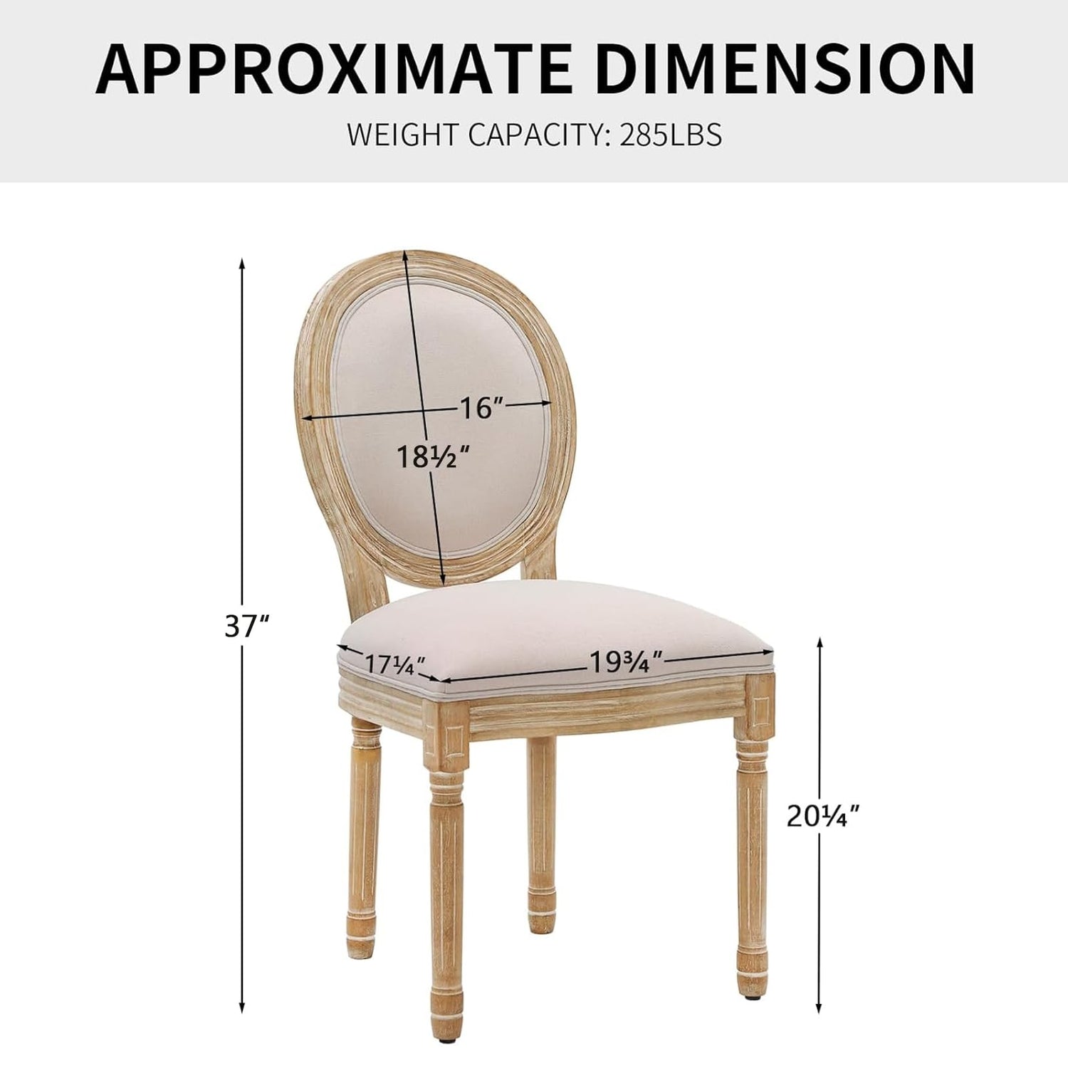 Furnimart French Country Vintage Dining Chairs Set of 4 Farmhouse Dining Chairs with Round Back and Solid Wood Legs, Oval Side Chairs for Kitchen Dining Room Living Room (Beige)