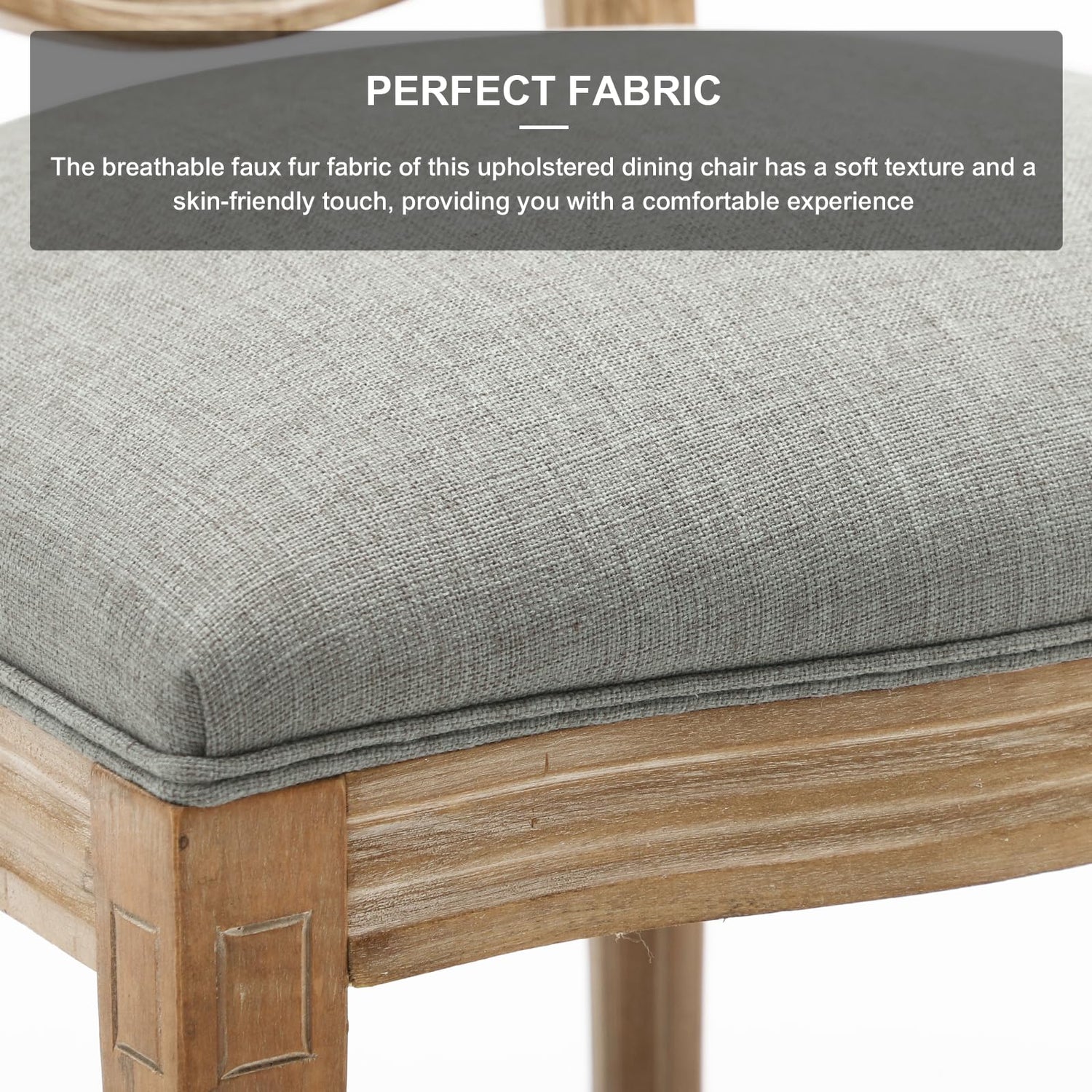 Furnimart French Country Vintage Dining Chairs Set of 4 Farmhouse Dining Chairs with Round Back and Solid Wood Legs, Oval Side Chairs for Kitchen Dining Room Living Room (Light Grey)