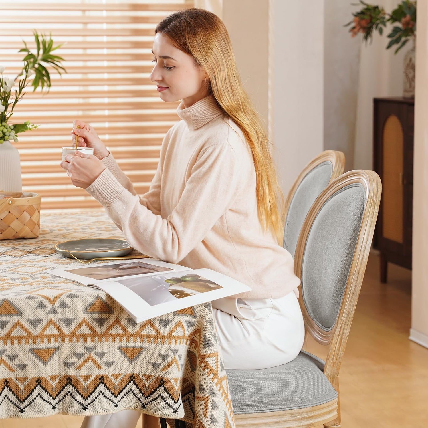 Furnimart French Country Vintage Dining Chairs Set of 6 Farmhouse Dining Chairs with Round Back and Solid Wood Legs, Oval Side Chairs for Kitchen Dining Room Living Room