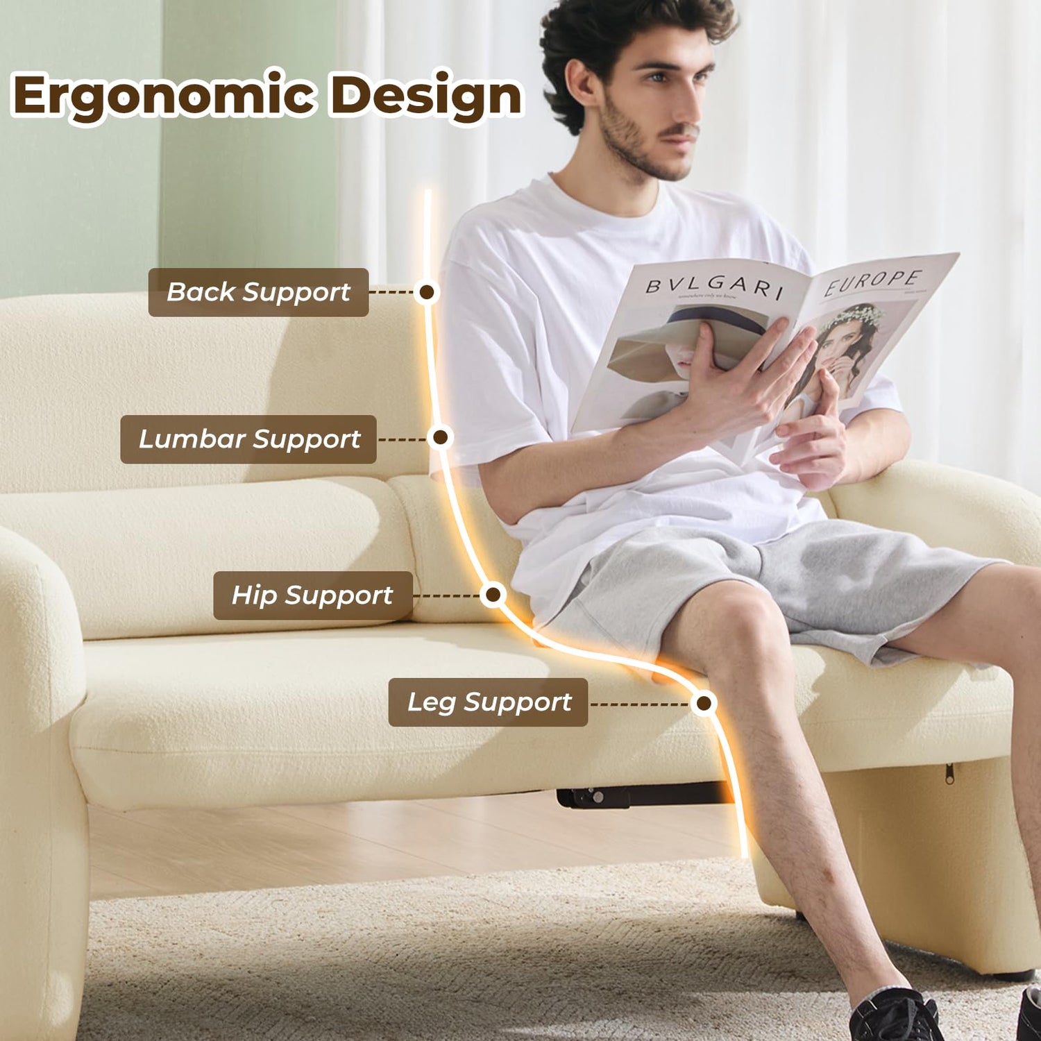 - ERGONOMIC CLOUD COMFORT WITH LUMBAR SUPPORT: This modern white loveseat features plush high-density foam cushions and two lumbar pillows for all-day comfort. The ergonomic design with rounded edges provides body-contouring support while preventing accidental bumps. Perfect as a comfy couch for small spaces or deep seat sofa for lounging.