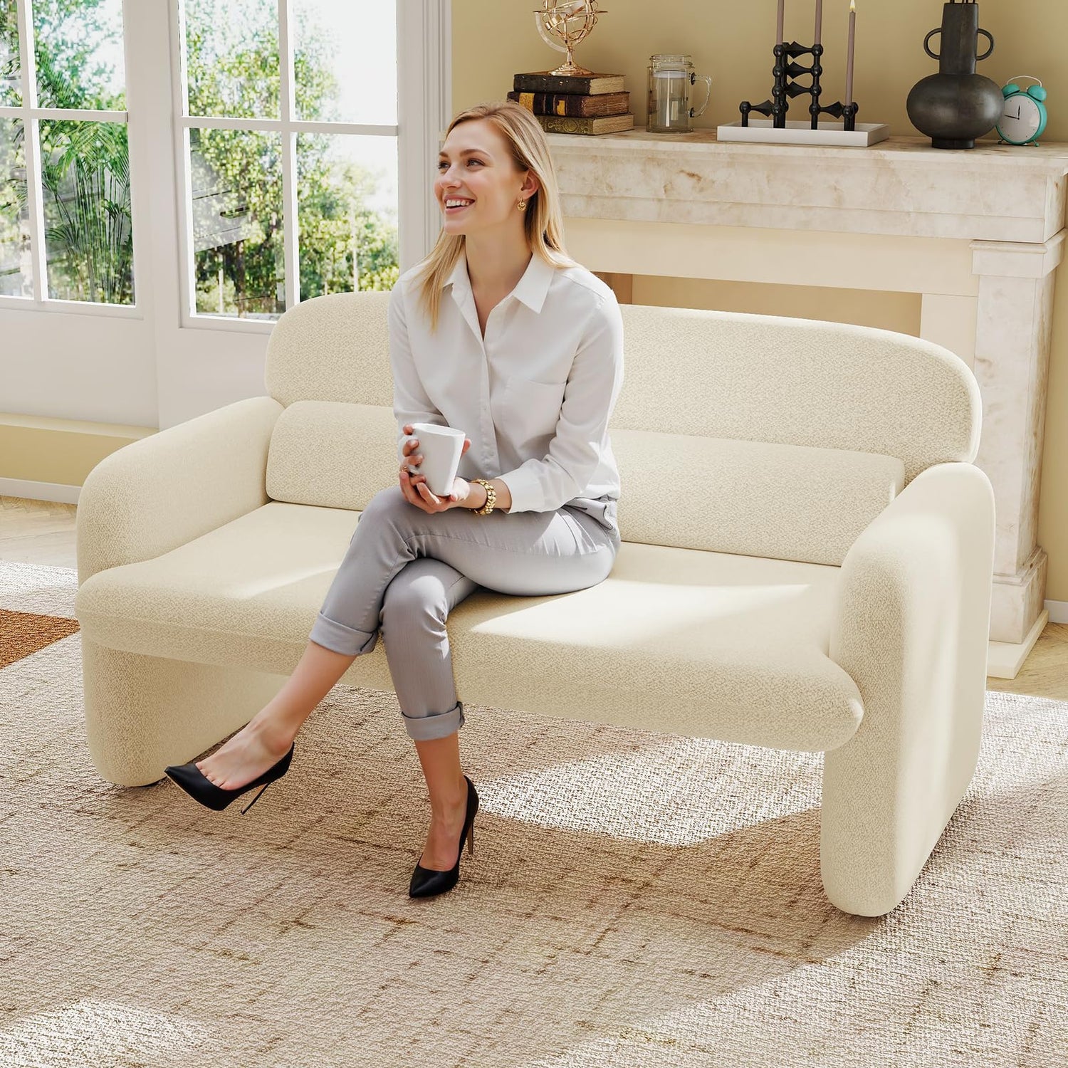 Furnimart Modern Loveseat Sofa, 54" 2-Seater Boucle Sofa, Comfy Upholstered Minimalist Couch, Small Couches for Small Spaces, Apartment, Office, Living Room, Bedroom, Dorm, Chenille White