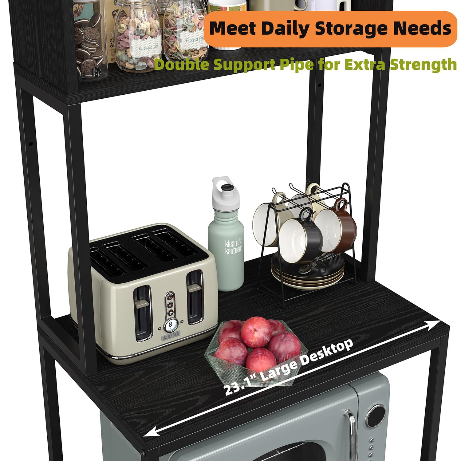 - 【Built-in Power Station】The bakers rack with power outlet has 2 AC outlets which can meet the simultaneous power needs of multiple appliances such as microwave ovens, bread machines, coffee machines, and mobile phones & Ipads.