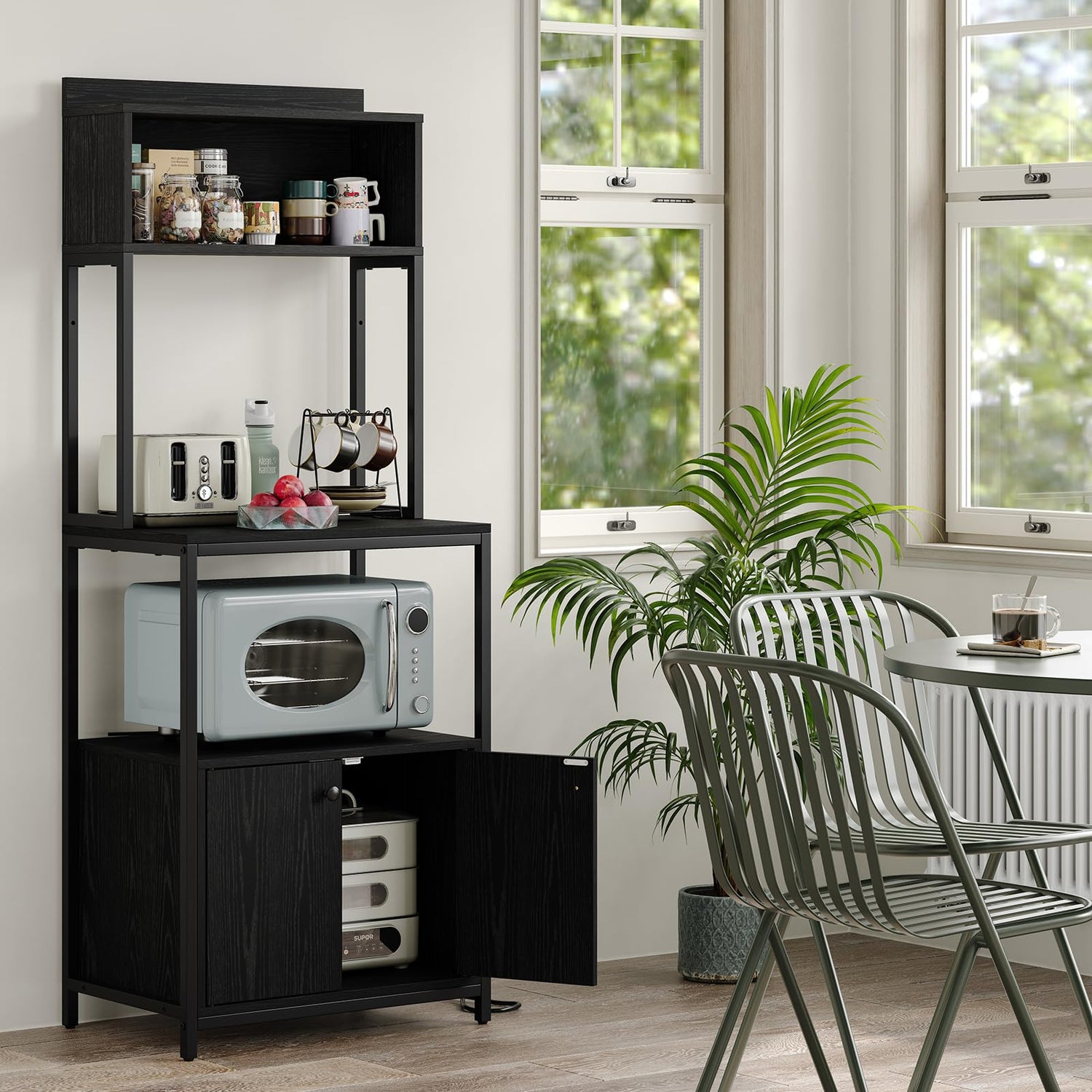 - 【Space Saving & Multifunctional】:This bakers rank has high on utility, not only a kitchen island, also as an elegant bookcase, microwave stand, spice rack organizer, bathroom cabinet, wine board for living room, and can harmonize with any other black furniture in any room. The vertical structures doesn’t take up space and add more storage space for bedroom, kitchen, pantry or bathroom.