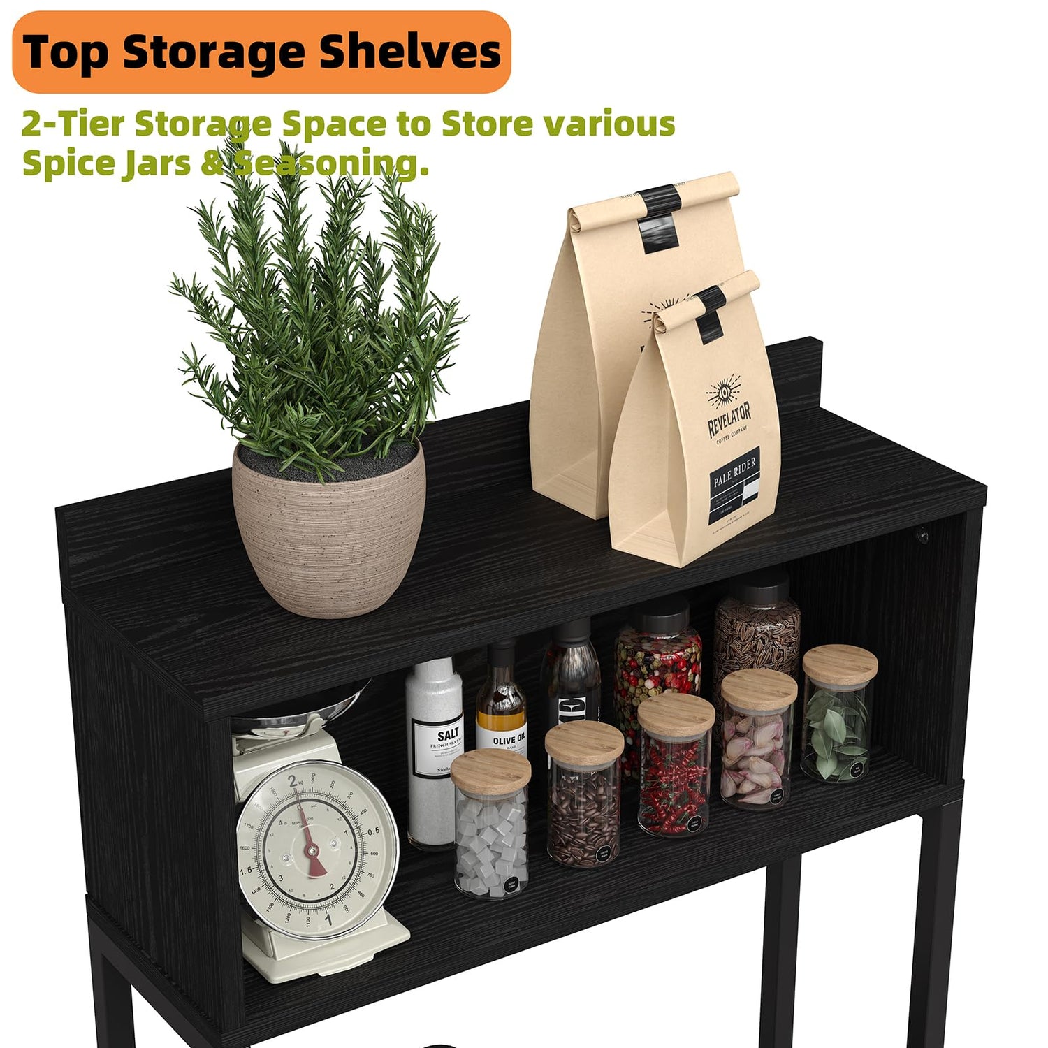 - 【Large Countertop & Hutch Design】: This kitchen storage baker rank is made of high-grade MDF wood and premium metal frame,features a 23.1”L x 15.4”D tabletop to provide a sturdy working surface, which is durable and easy to clean.