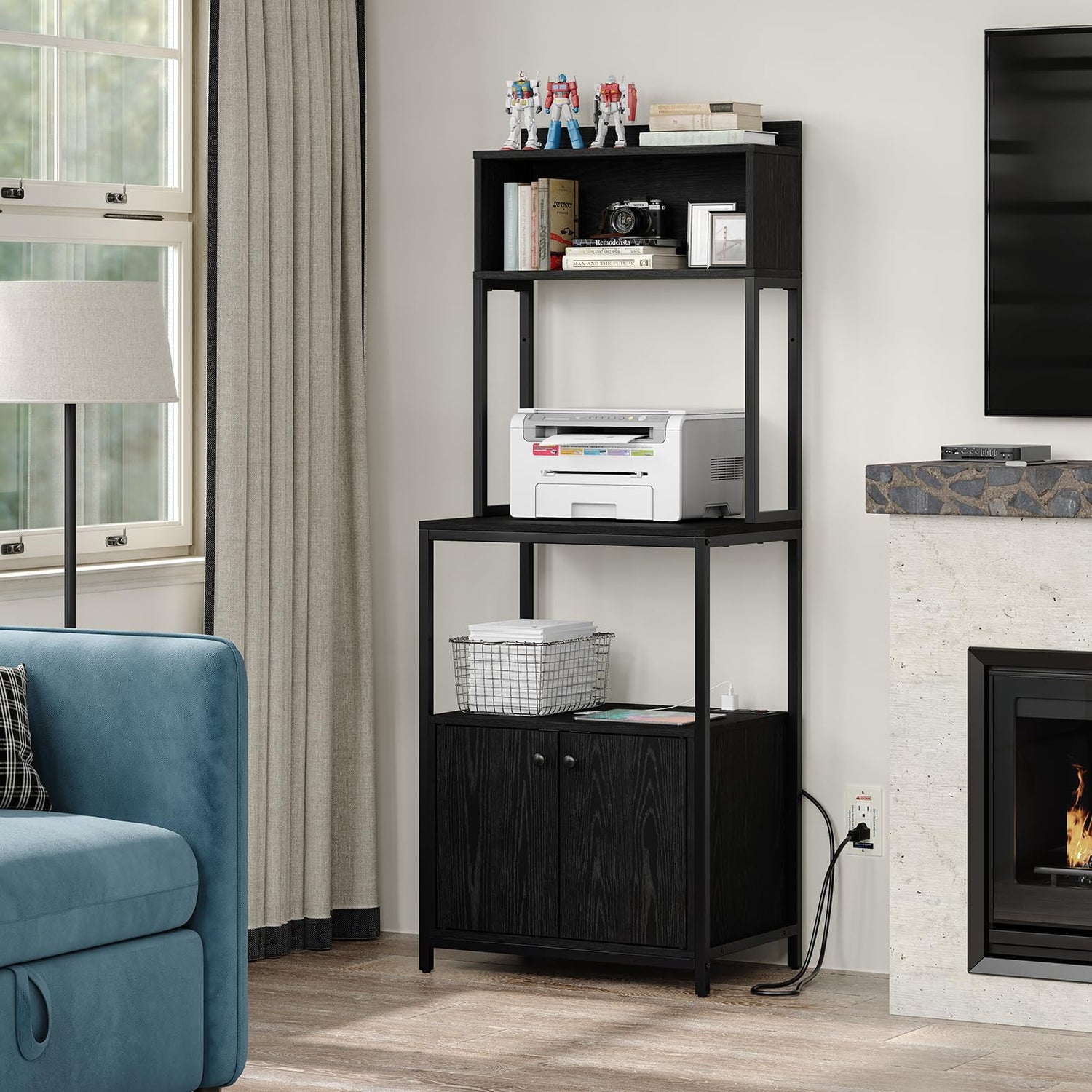 Furniouse 5-Tier Kitchen Bakers Rack with Power Outlet, Industrial Microwave Oven Stand with Storage, Kitchen Storage Shelf with Cabinet, Coffee cart, Standing Kitchen Storage Rack (Black)