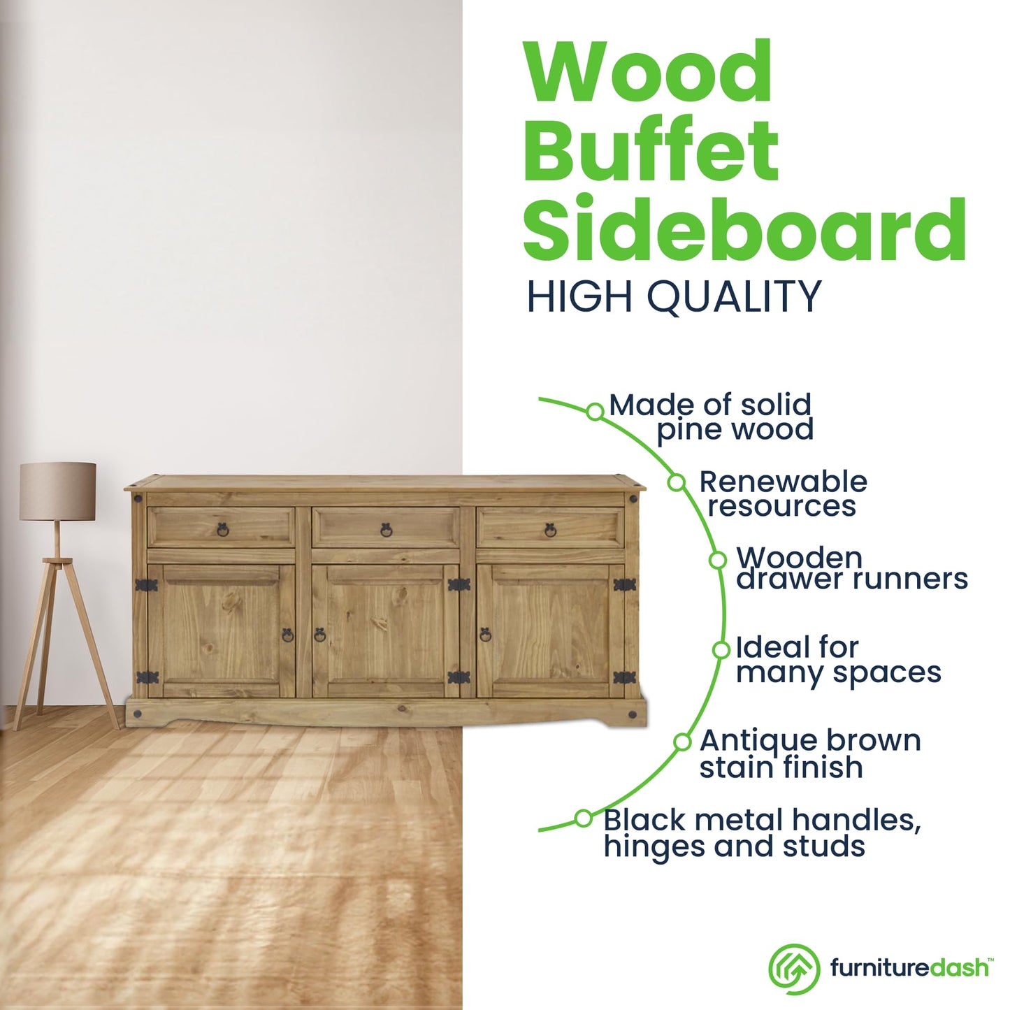 Furniture Dash Solid Wood Buffets & Sideboards 65.9" W, 16.9" D, 31.6" H - Kitchen Storage Cabinets, Buffet Cabinet with Storages, Bar Liquor