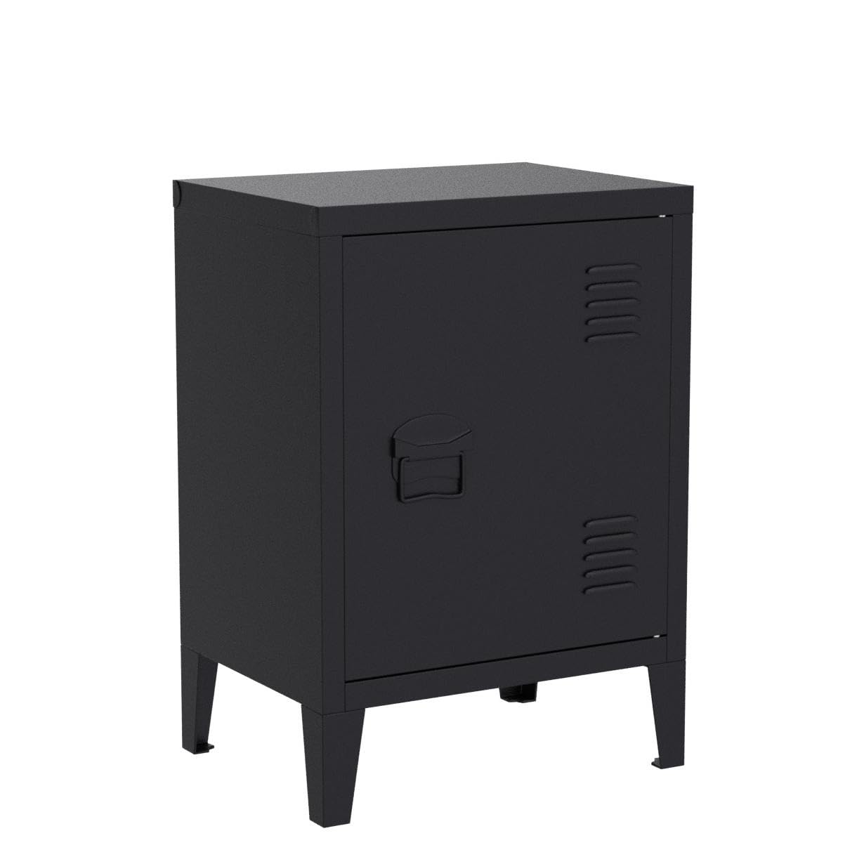 FurnitureR Industrial Metal Storage Cabinet Nightstand End Table Bedside Coffee Table,1 Door with Removable Shelf,Size:15.9'' x 12'' x 22.6'' (Black)