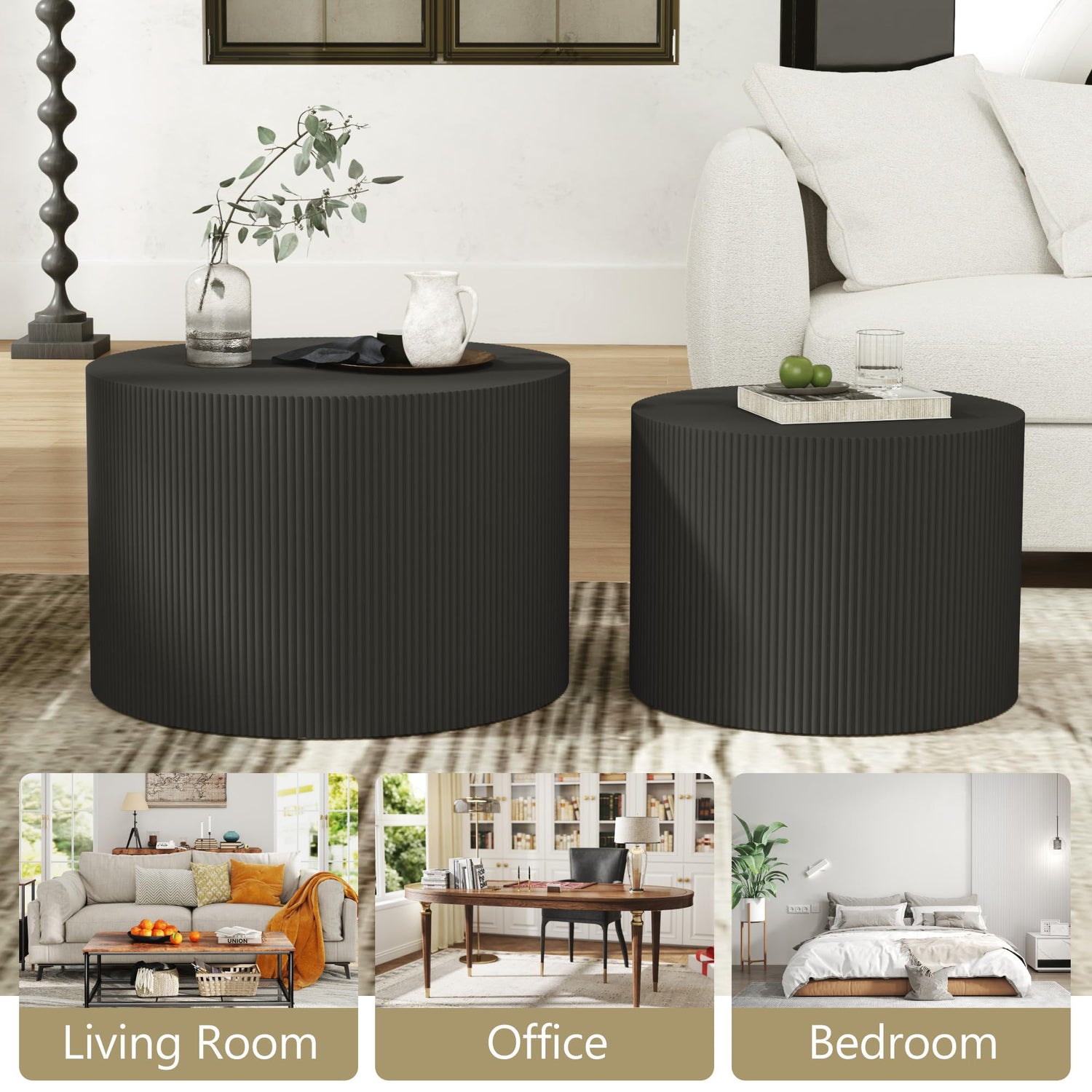 - 【Multifunctional Use】The modern coffee table's nesting design make it versatile. With pair the tables together, you can get a large available space to eat, play or place necessities. With use them separately, you can get a bedside table in the bedroom, a sofa table in the living room, or a shoe changing stool in the entryway.