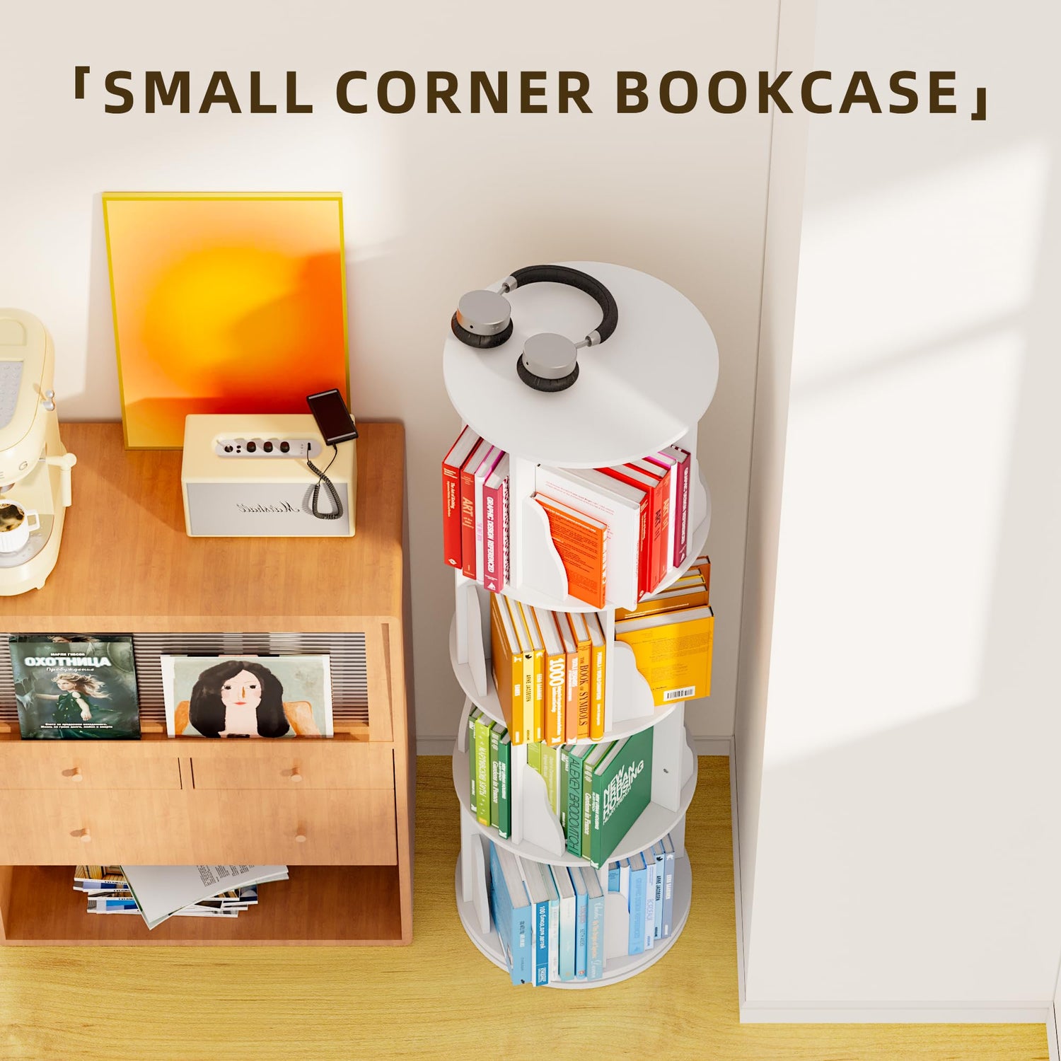 Furniwell 4-Tier Rotating Bookshelf and Bookcase, 360° Display Stackable Spinning Book Shelf Tower with Raffle, Floor Standing Corner Shelf for Living Room, Study Room(16" W*16" D*51" H)