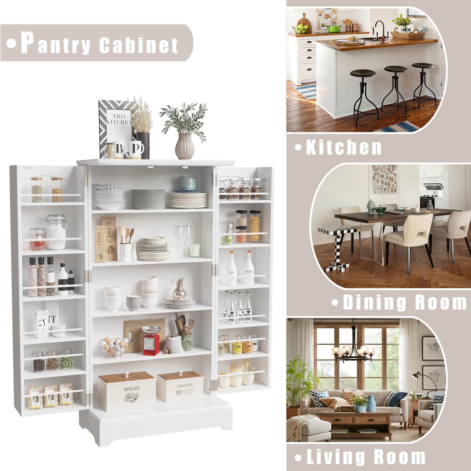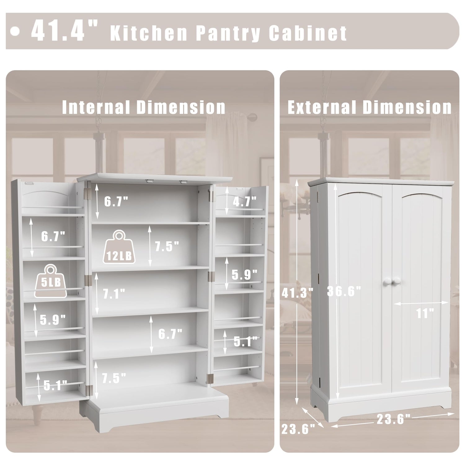 Furniwell 41" Kitchen Pantry Storage Cabinet, Freestanding Buffet Cupboards with Doors & Adjustable Shelves Pantry Organizers, Pantry Cabinets for Kitchen, Living Room and Dining Room