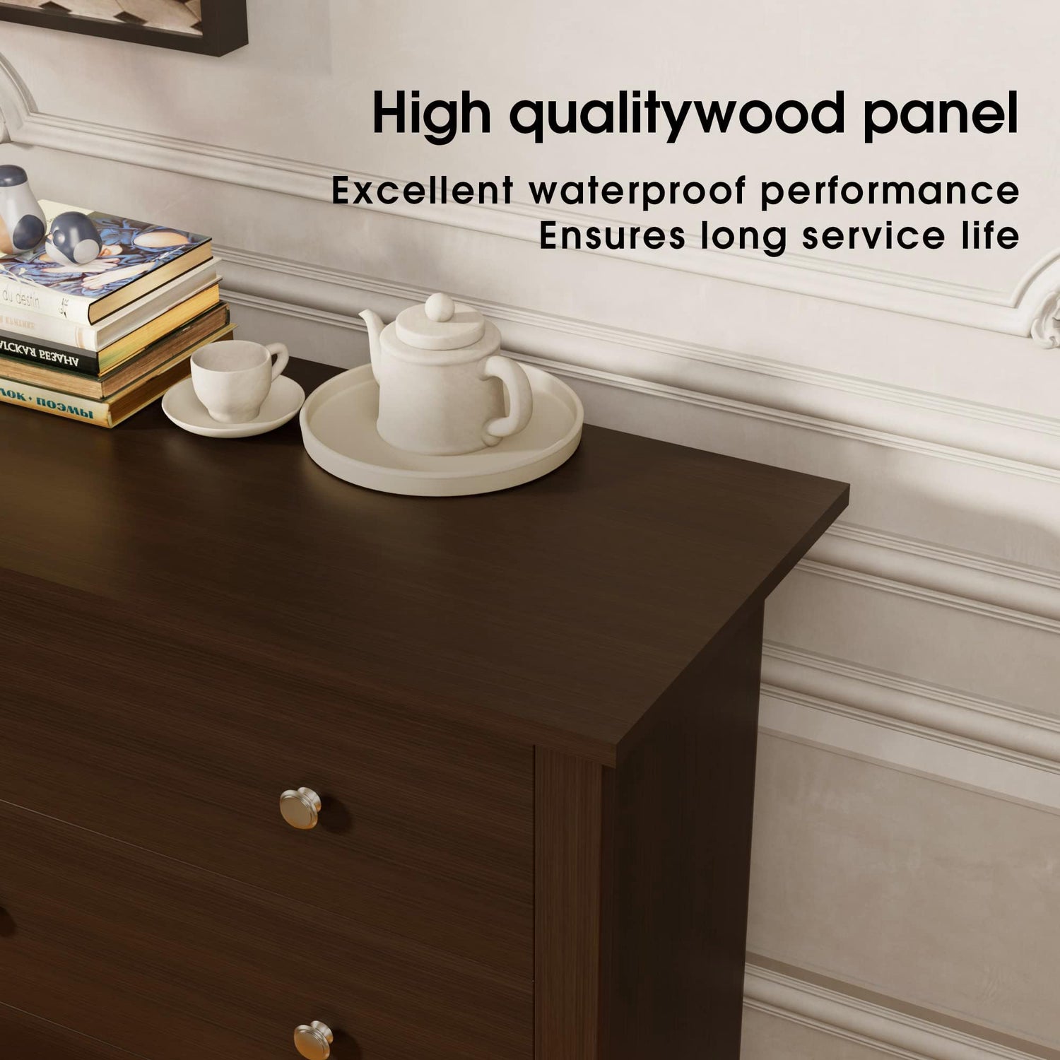 Furniwell 6 Drawer Dresser for Bedroom, Wood Dresser Wide Storage Organizer for Living Room Hallway Closets (Brown)