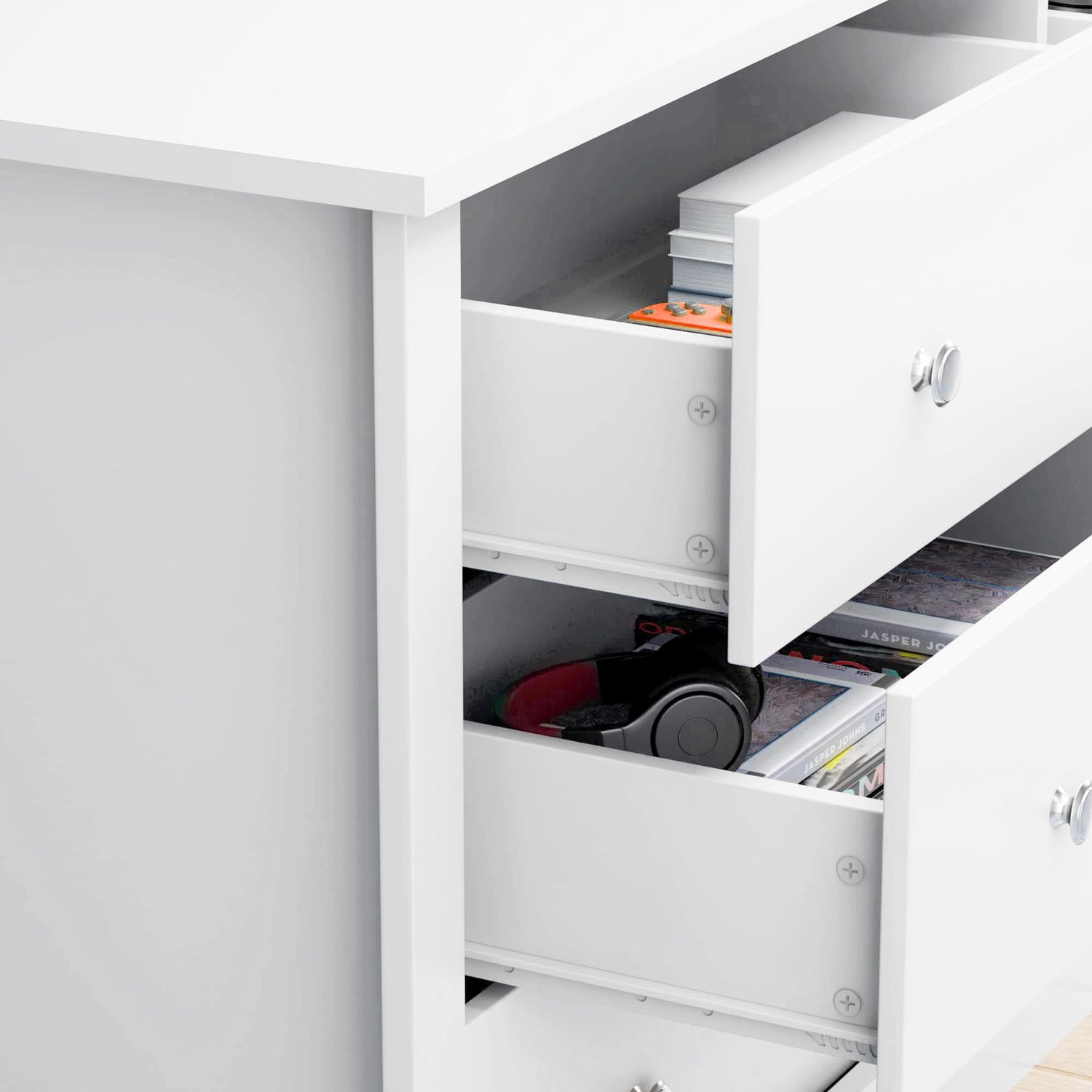 - [Sturdy&Safety] Our drawers are equipped with high-quality metal slides to ensure stability and no noise in daily use. In addition, in order to create a safe environment for your family, this cabinet is also designed with an anti-tipping device, so you no longer have to worry about your family's safety.