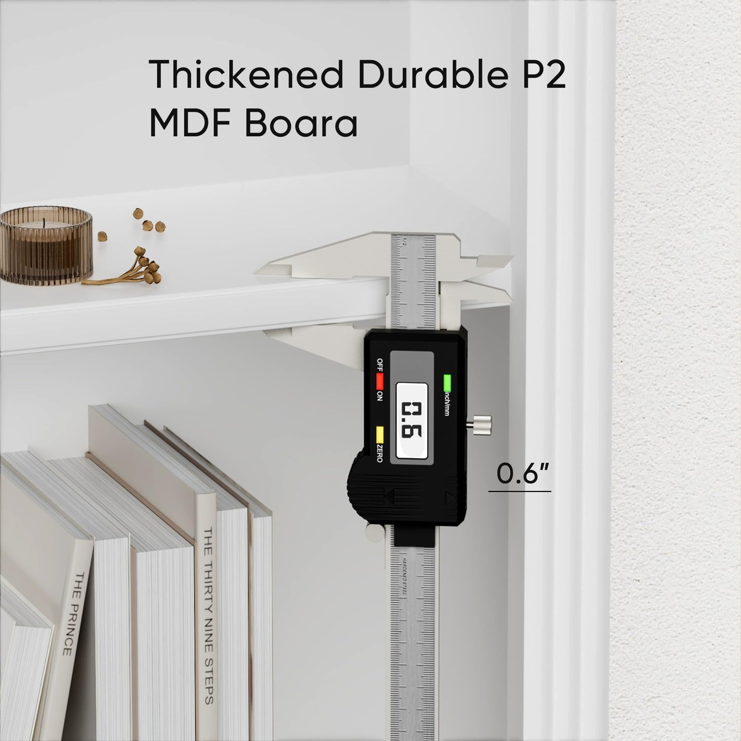 Constructed from 0.58’’ thick sturdy P2 MDF boards, this bookcase is built to withstand significant weight, making it a reliable choice for all your storage needs. The surfaces are both waterproof and scratchproof, ensuring easy maintenance and a long-lasting appearance. Additionally, safety is of utmost importance, which is why this bookcase features a tipover resistance device that securely connects it to the wall, greatly reducing the risk of tipping.