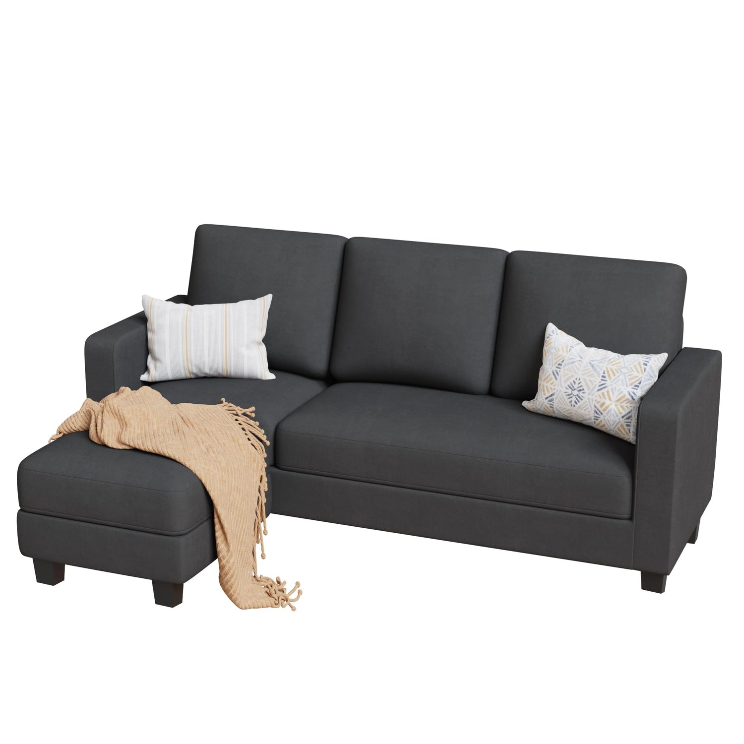 Furniwell Convertible Sectional Sofa Couch, L Shaped 3-Seat Small Couch for Living Room with Ottoman Modern Fabric Reversible Chaise for Apartment and Small Space (Dark Gray)