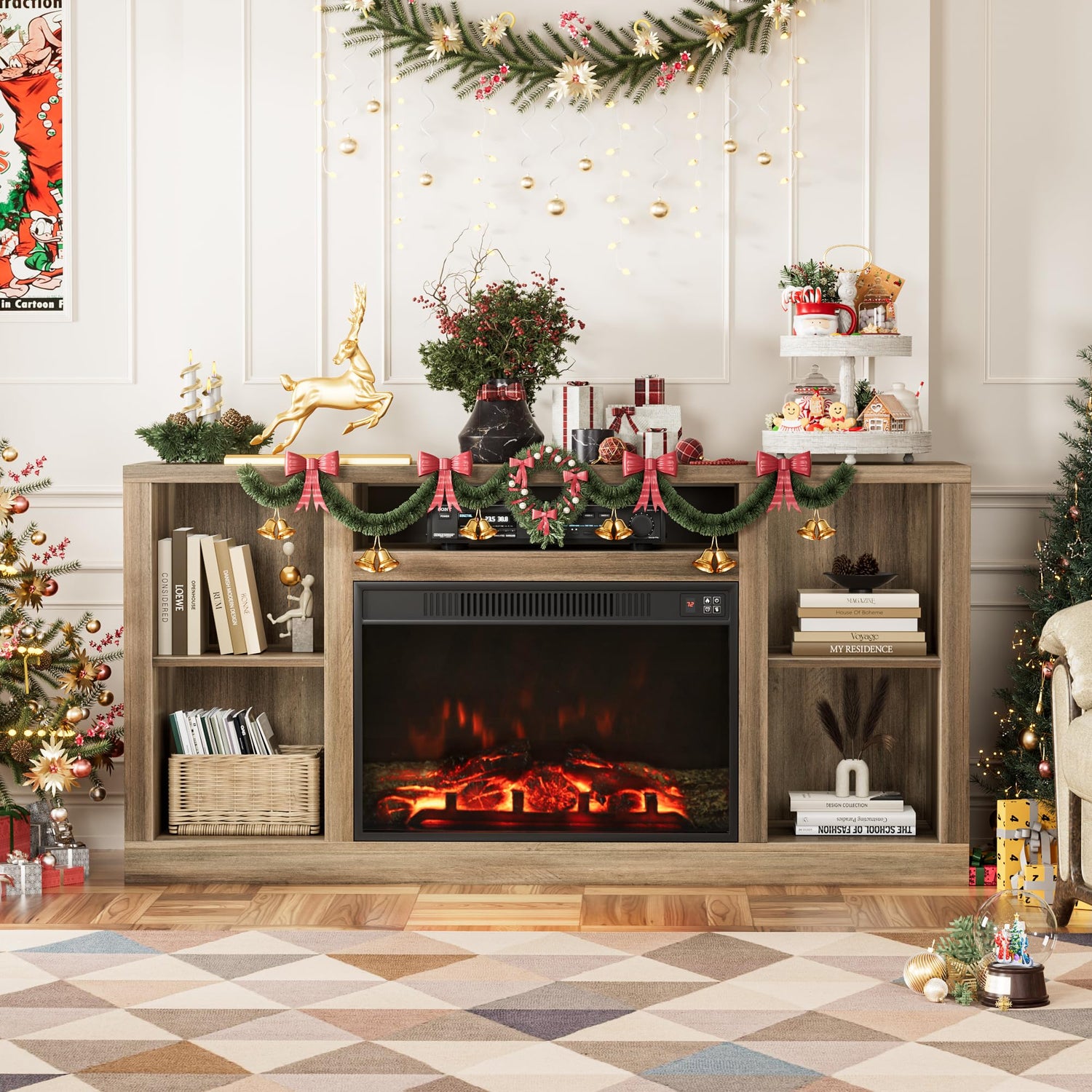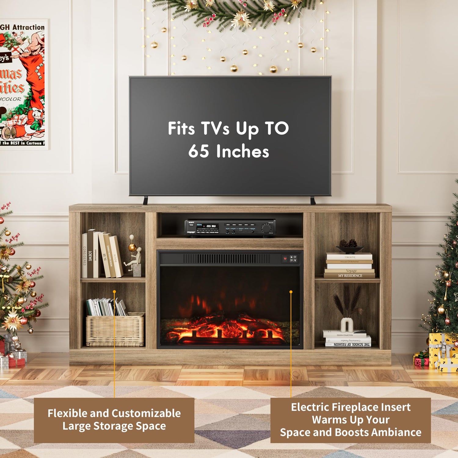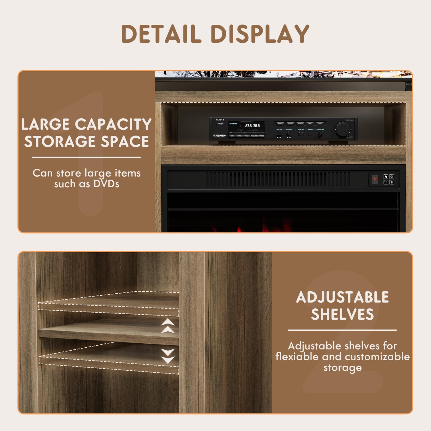 - Fireplace TV stand: Choose a wood TV stand for your home, the flame effect of the built-in fireplace is realistic, make your home highlight warmth and stylish, fits TVs up to 65 inches, suitable for living room, bedroom.
