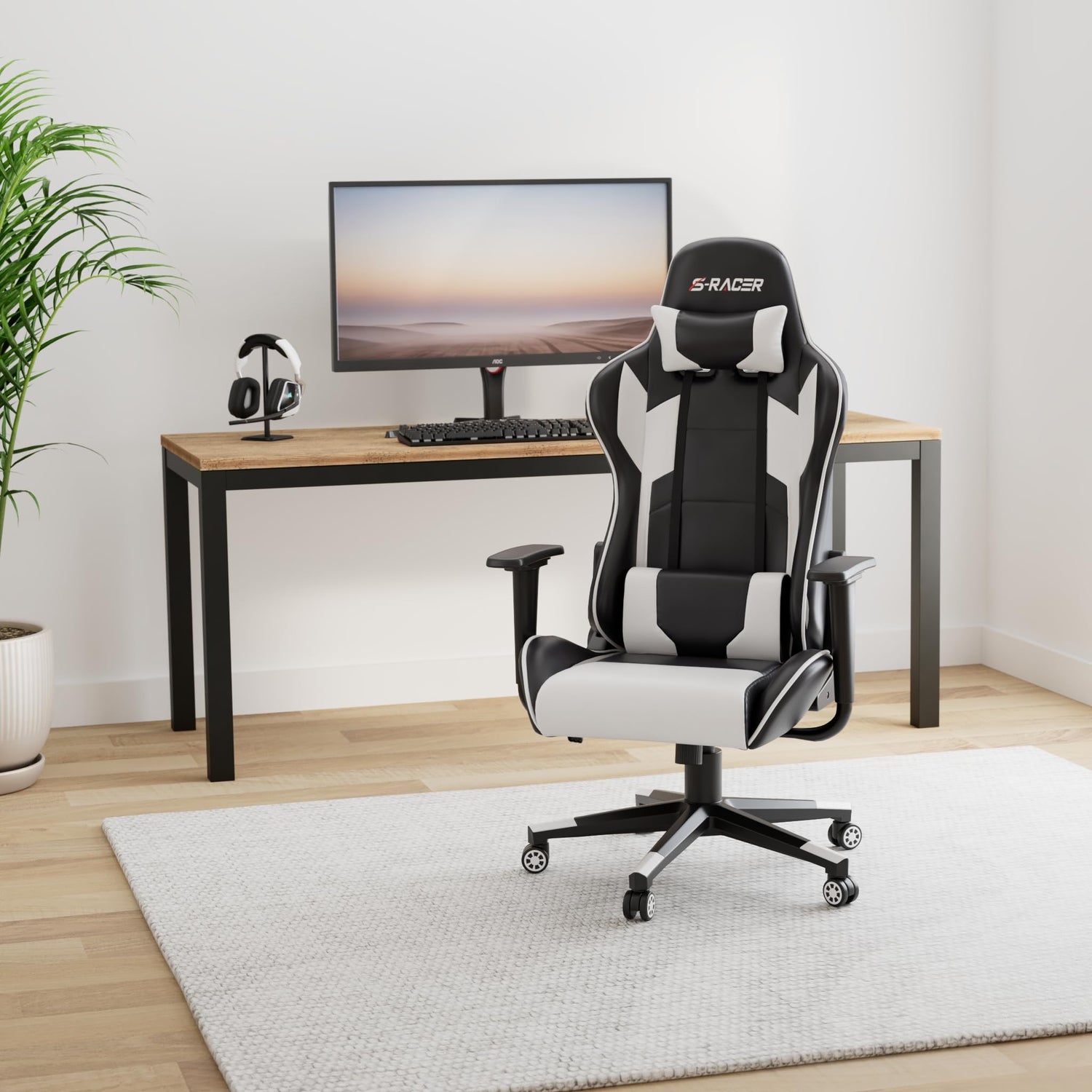 Furniwell Gaming Chair PU Leather Office Chair High Back Computer Chair Desk Chair Adjustable Swivel Racing Executive Leather Ergonomic Task Chair with Headrest and Lumbar Support (White)