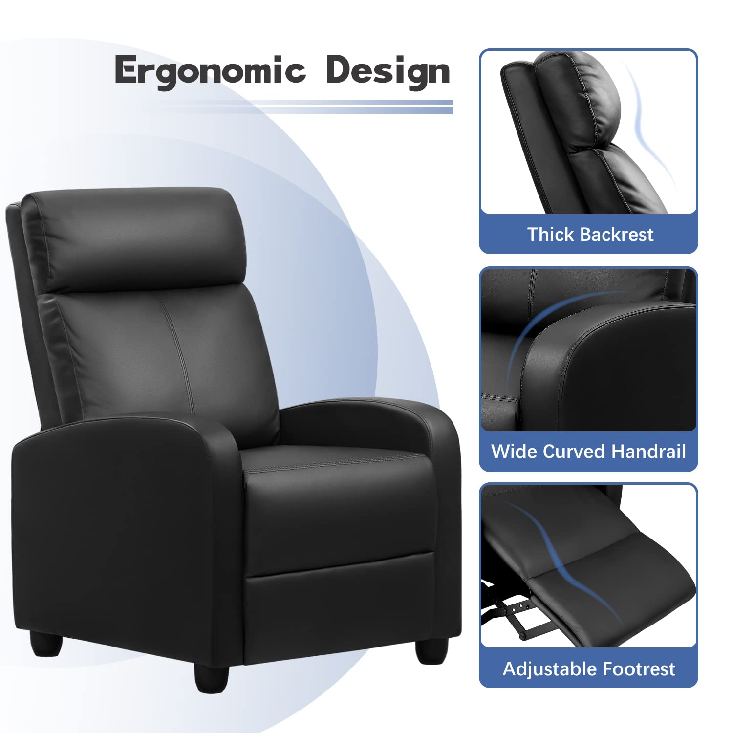 Furniwell Massage Recliner Chair for Living Room Adjustable PU Leather Reclining Chair Home Theater Seating Modern Winback Single Sofa for Adults with Footrest (Leather, Black)