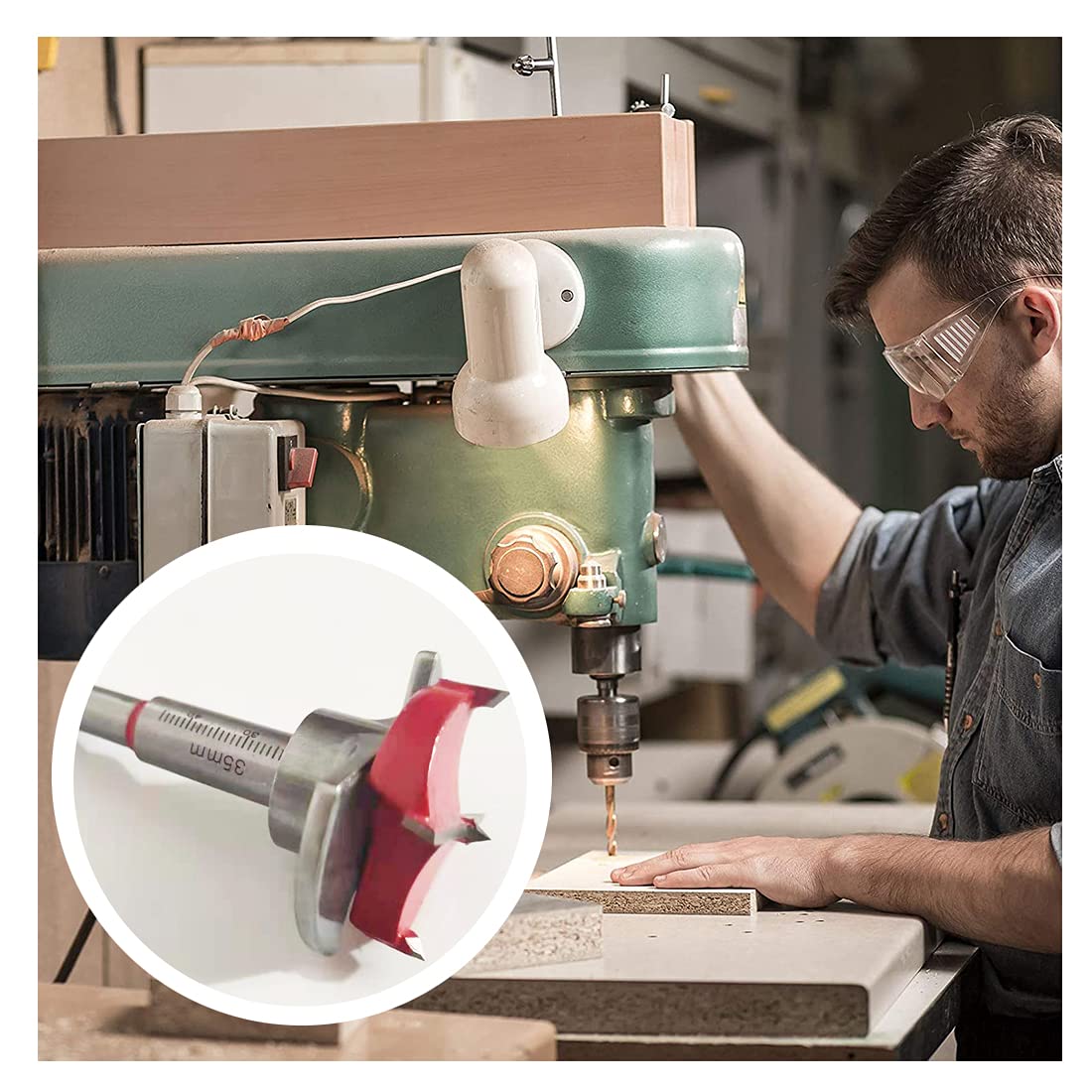 Furnrubden Forstner Drill Bit, 35mm Concealed Hinge Jig kit, Wood Drilling Hole Saw Set Woodworking Drilling Tool Wood Cutter for Face Frame Cabinet Cupboard Door Hinges