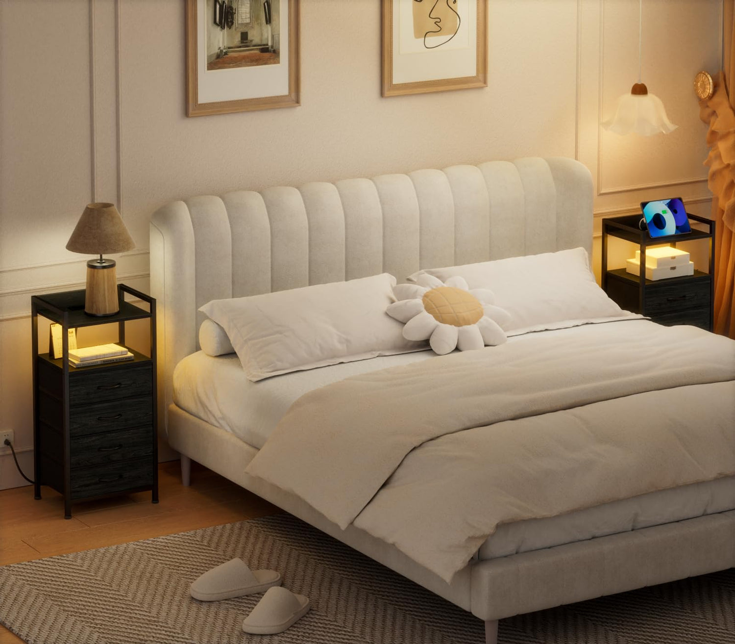 - Charging Station: The built-in power outlets provide the ultimate convenience. This bedroom table includes 2 AC outlets and 2 USB ports. You can easily connect and charge your electronic devices, such as smartphones, tablets, or bedside lamps without the need for extra extension cords or searching for available outlets.
