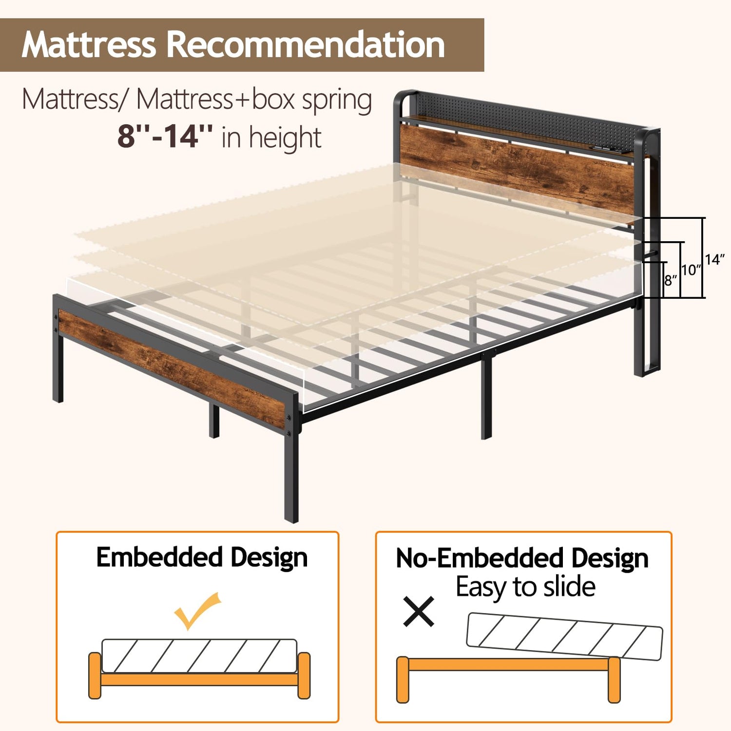 Equipped with a storage headboard featuring two standard power outlets and two USB ports, this frame allows you to effortlessly charge your electronics. The 3.9-inch wide headboard offers ample storage for essentials like your phone, glasses, clock, and books, ensuring everything you need is within easy reach.
