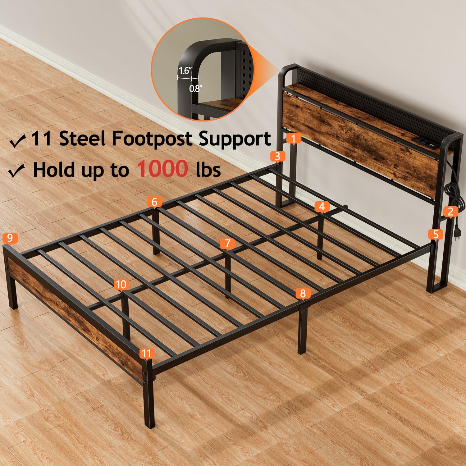 Transform your bedroom with the Furnulem Industrial Full Bed Frame, a perfect blend of style, functionality, and convenience. Crafted in a rustic brown finish, this bed frame not only enhances your space but also introduces modern comfort and practicality.