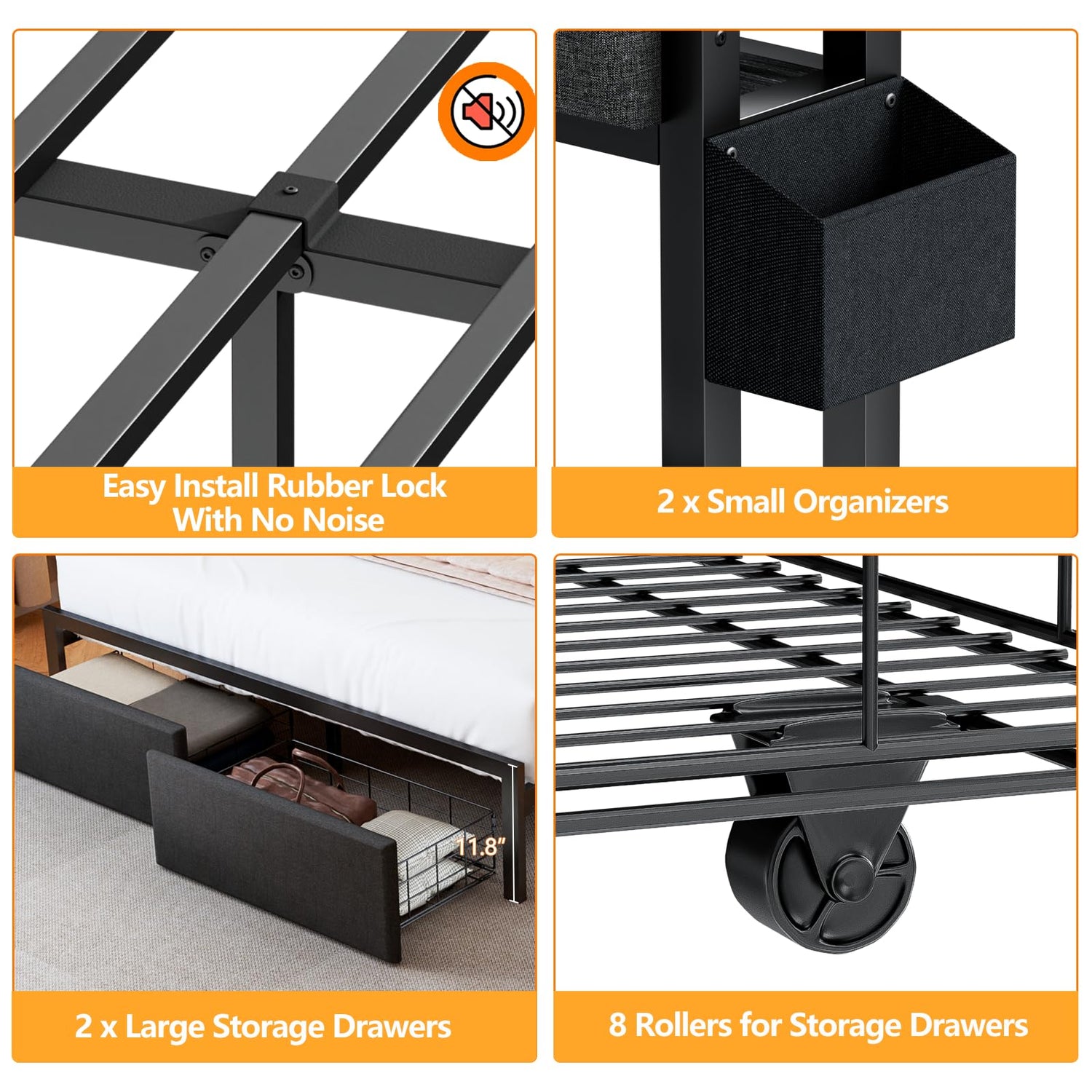 - 【Under-bed Storage Drawers with Pulleys】: Equipped with two storage drawers on pulleys, this bed provides an efficient solution for keeping your belongings neatly organized. Store extra bedding, clothing, or seasonal items out of sight yet easily accessible whenever you need them. The pulleys on the drawers allow you to effortlessly pull out drawers and also protects the floor from scratches.