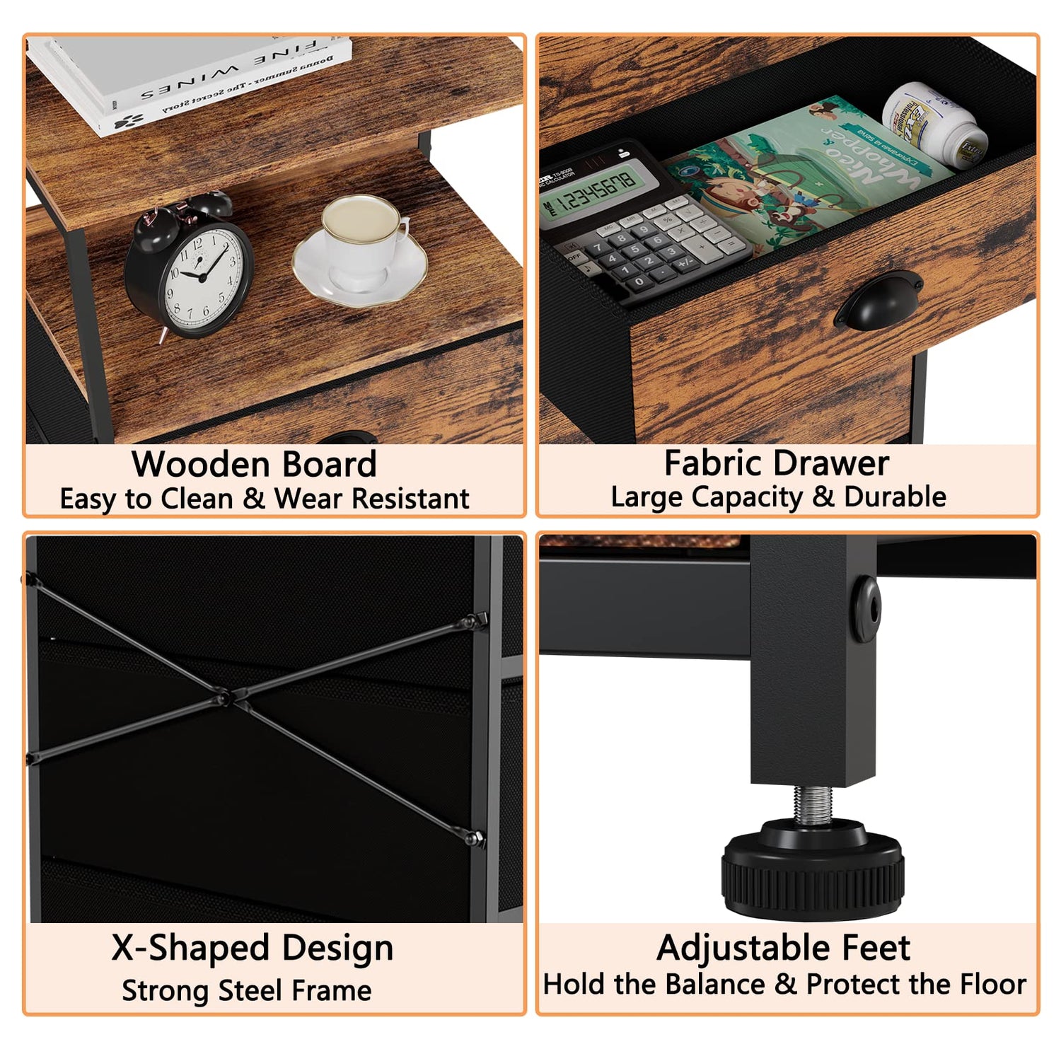 - 【Double Display Shelf】Specially designed with the double-layer shelf. The wooden top is solid and wear-resistant. It can display vases, photo frames, lamps, decorations, etc. Or it can be used to place glasses, alarm clocks, books, chargers and other sundries, which is not only convenient and practical but also artistic as a decor.