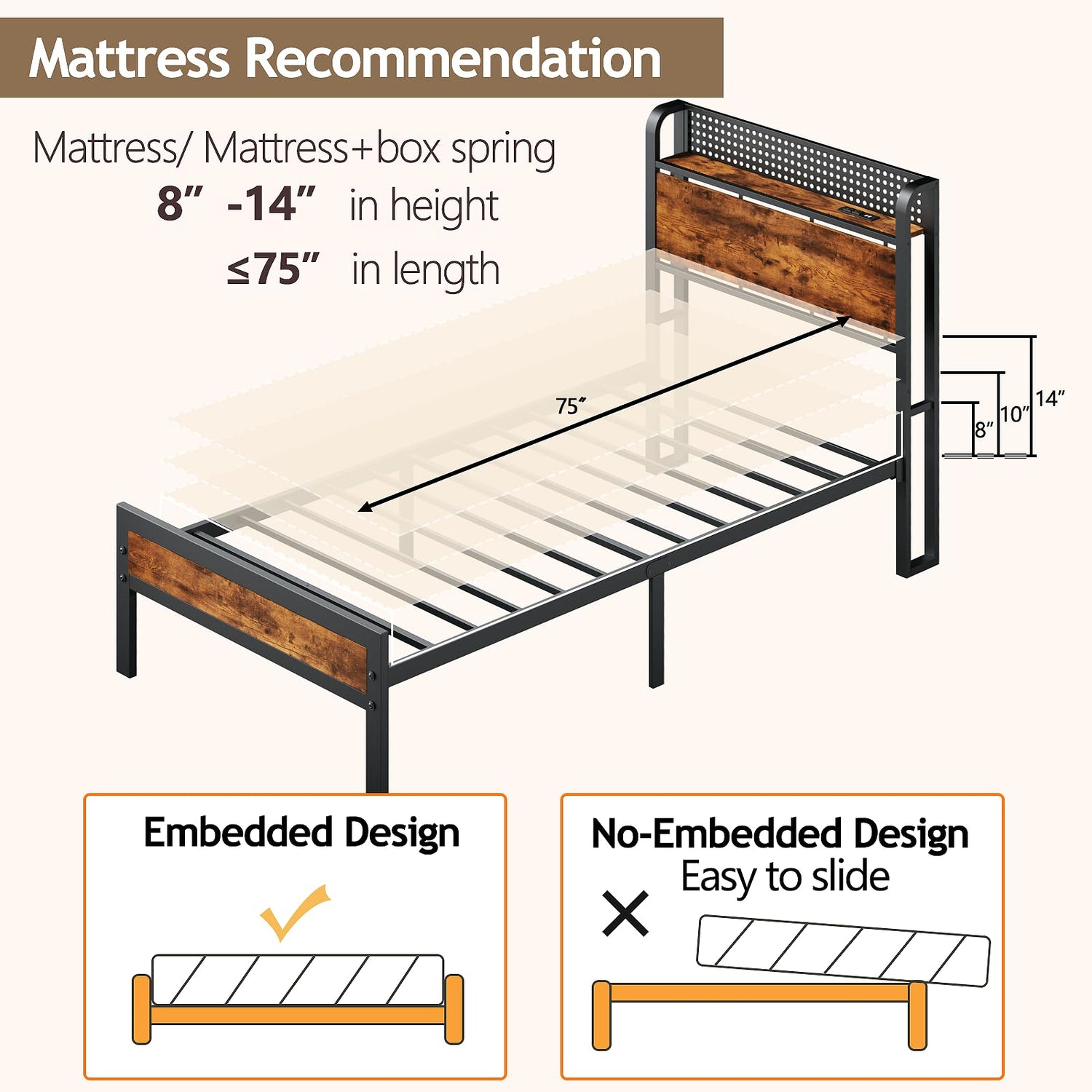 Introducing the Furnulem Twin Bed Frame with LED Lights, Charging Station, and Under-Bed Storage in Rustic Brown – where style meets functionality. This innovative bed frame combines modern design with practical features, making it the perfect addition to any bedroom.