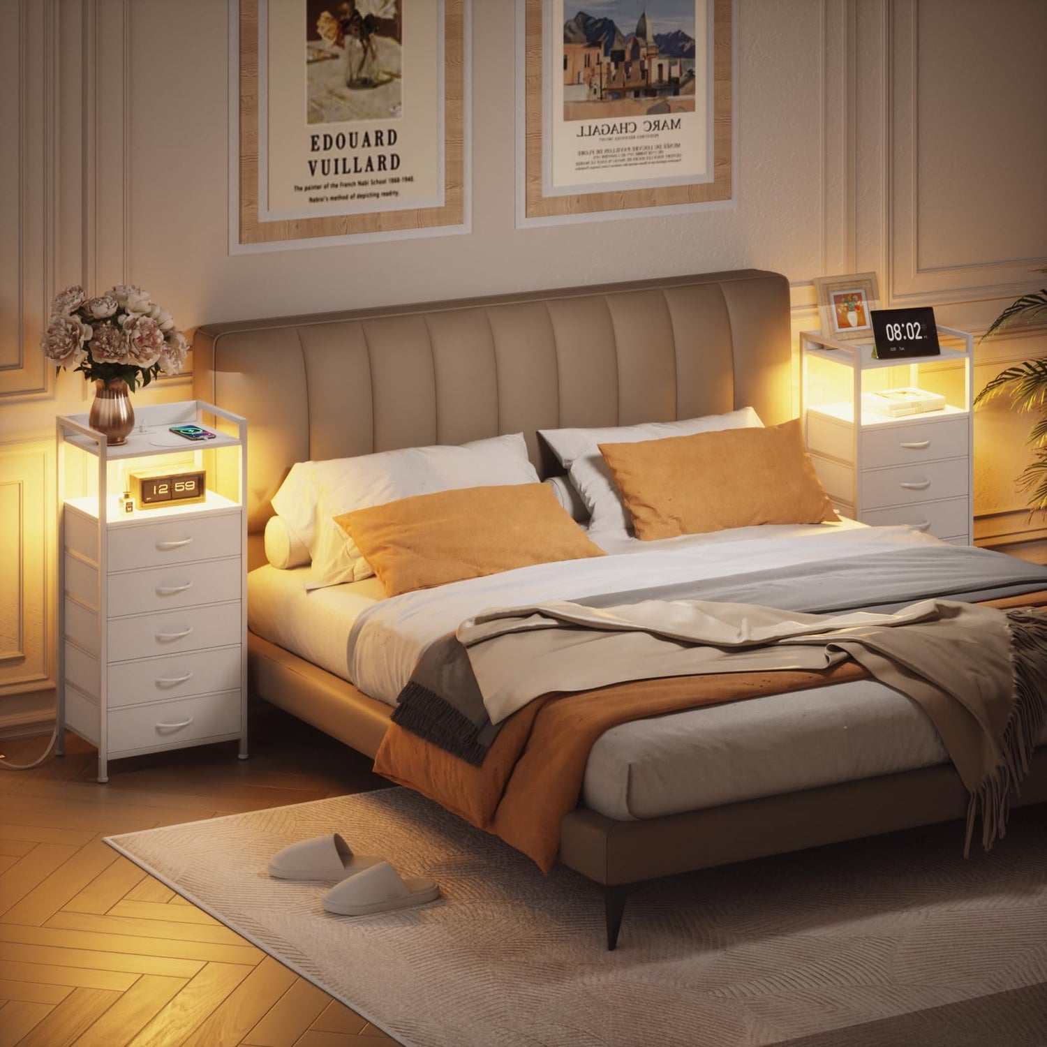 - Charging Station: The built-in power outlets provide the ultimate convenience. This tall night stand includes 2 AC outlets and 2 USB ports. You can easily connect and charge your electronic devices, such as smartphones, tablets, or bedside lamps without the need for extra extension cords or searching for available outlets.