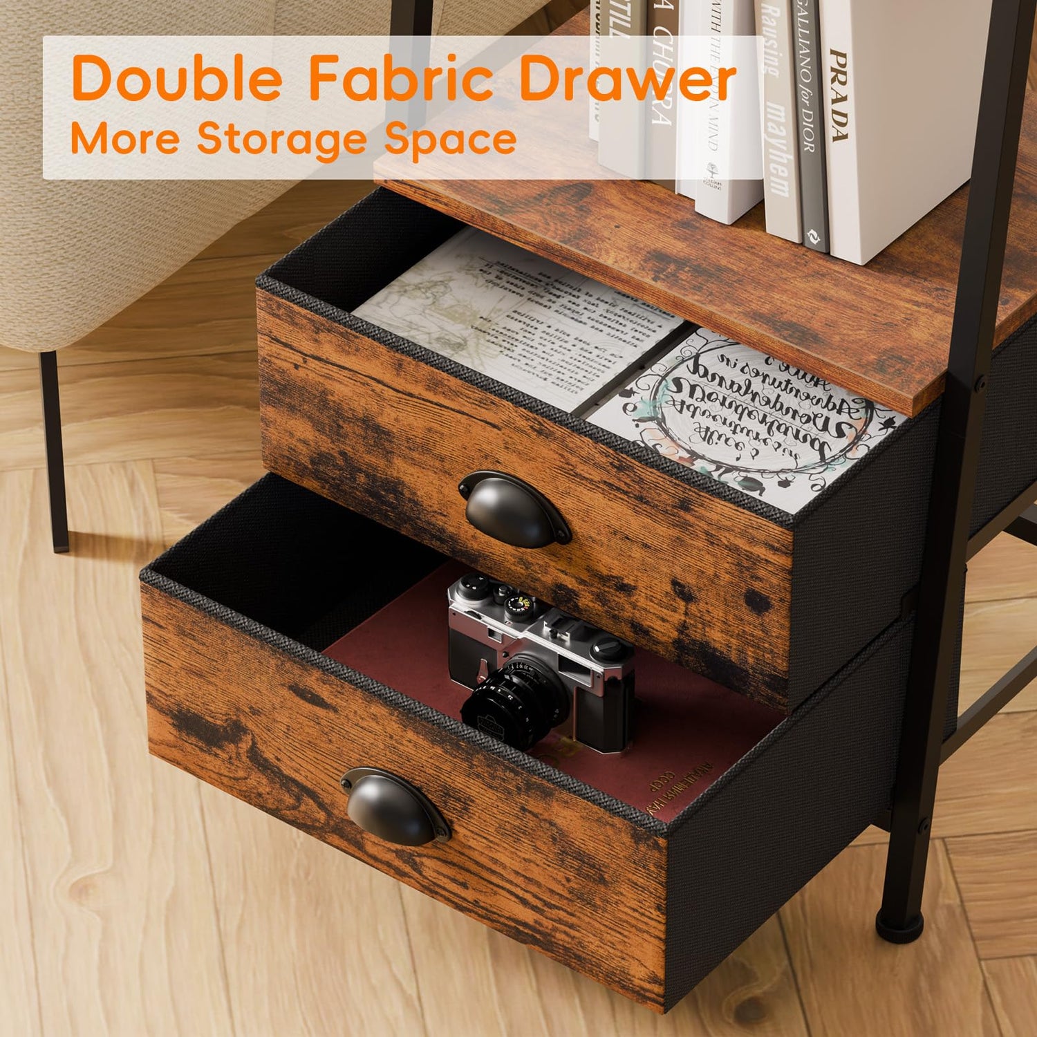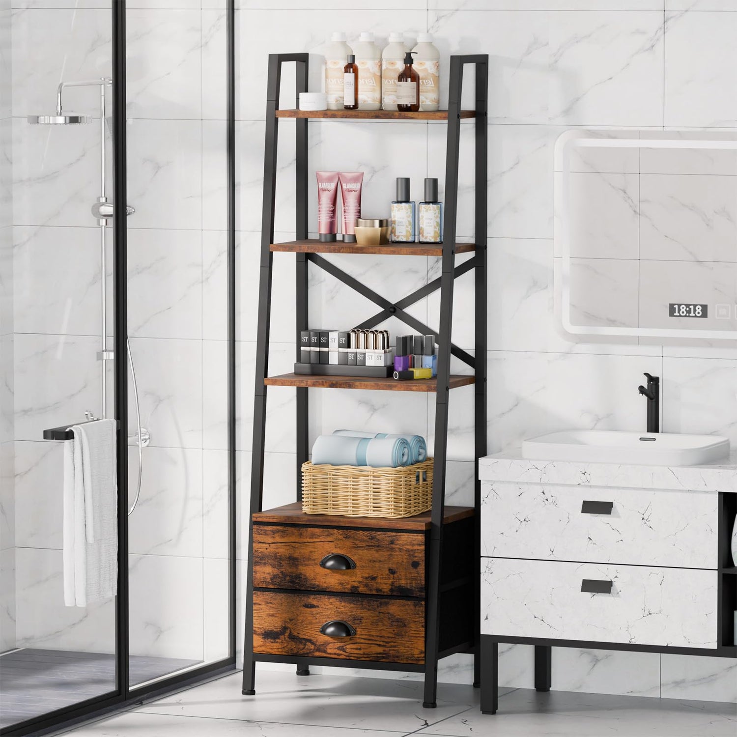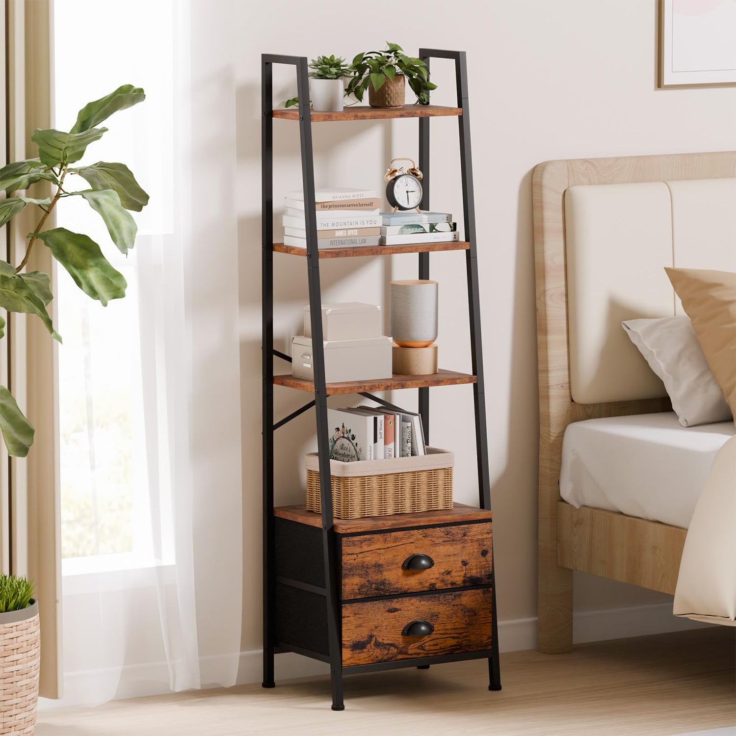Furologee 4-Tier Ladder Shelf,Small Bookshelf with 2 Drawers,Vertical Bookcase Storage Rack Organizer,Rustic Bookshelves for Living Room,Bedroom,Bathroom,Home Office,Kitchen,Rustic Brown