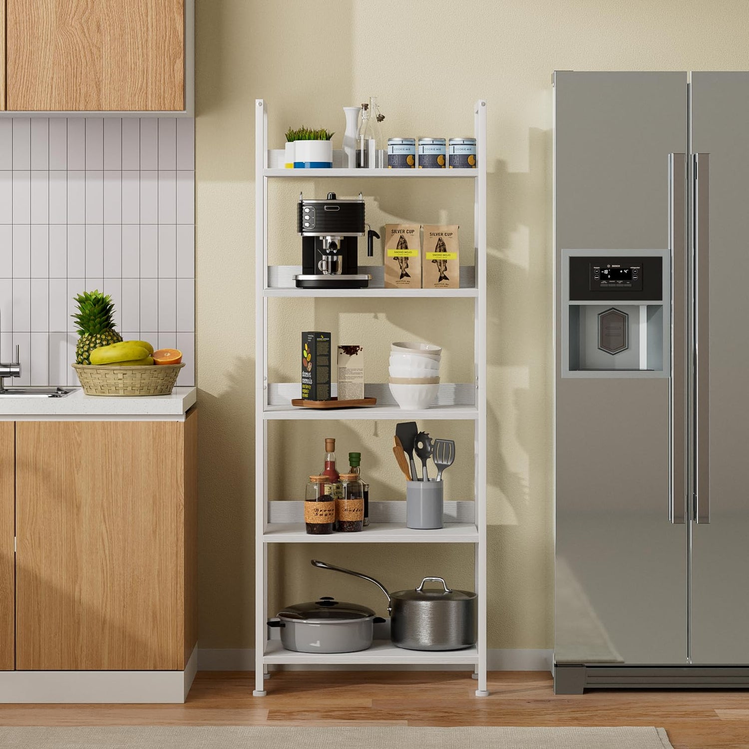 - [Multi-function Shelves]: 5 shelf bookcase can be used in multiple scenarios. Prefect as display shelf and bookshelves in the bedroom, living room, home office, nursery, ect. Used as standing storage shelf, kitchen rack or plant shelf for kitchen, bathroom, garage, balcony, ect. It can be matched with any style of furniture, customize your home life.