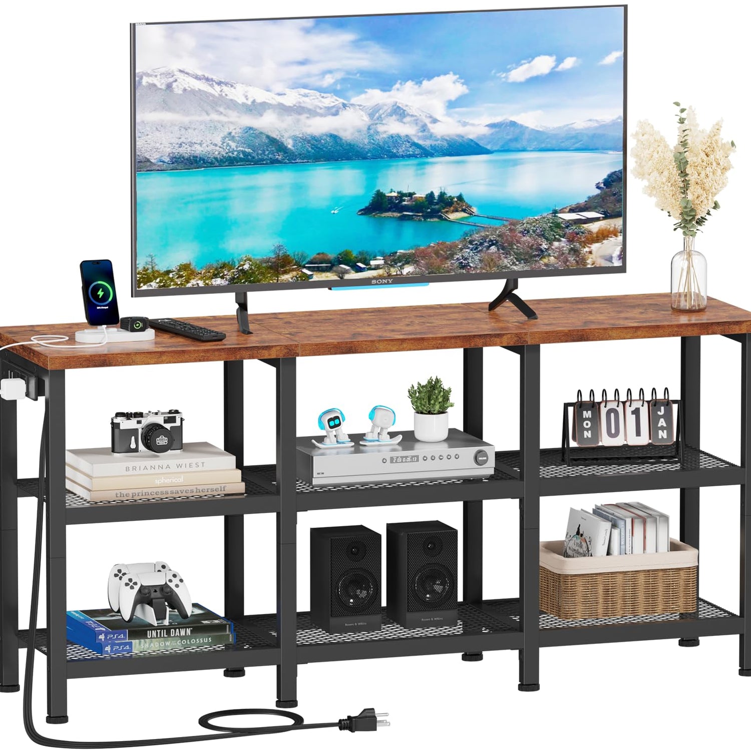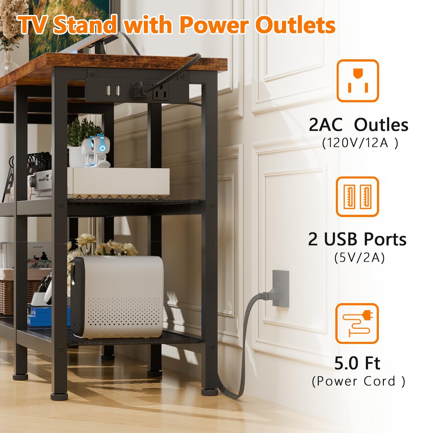 Furologee TV Stand with Power Outlets, Small Entertainment Center with Open Storage Shelves, TV Media Console Center for TVs up to 50 Inch, Television Stands for Living Room/Bedroom, Rustic Brown
