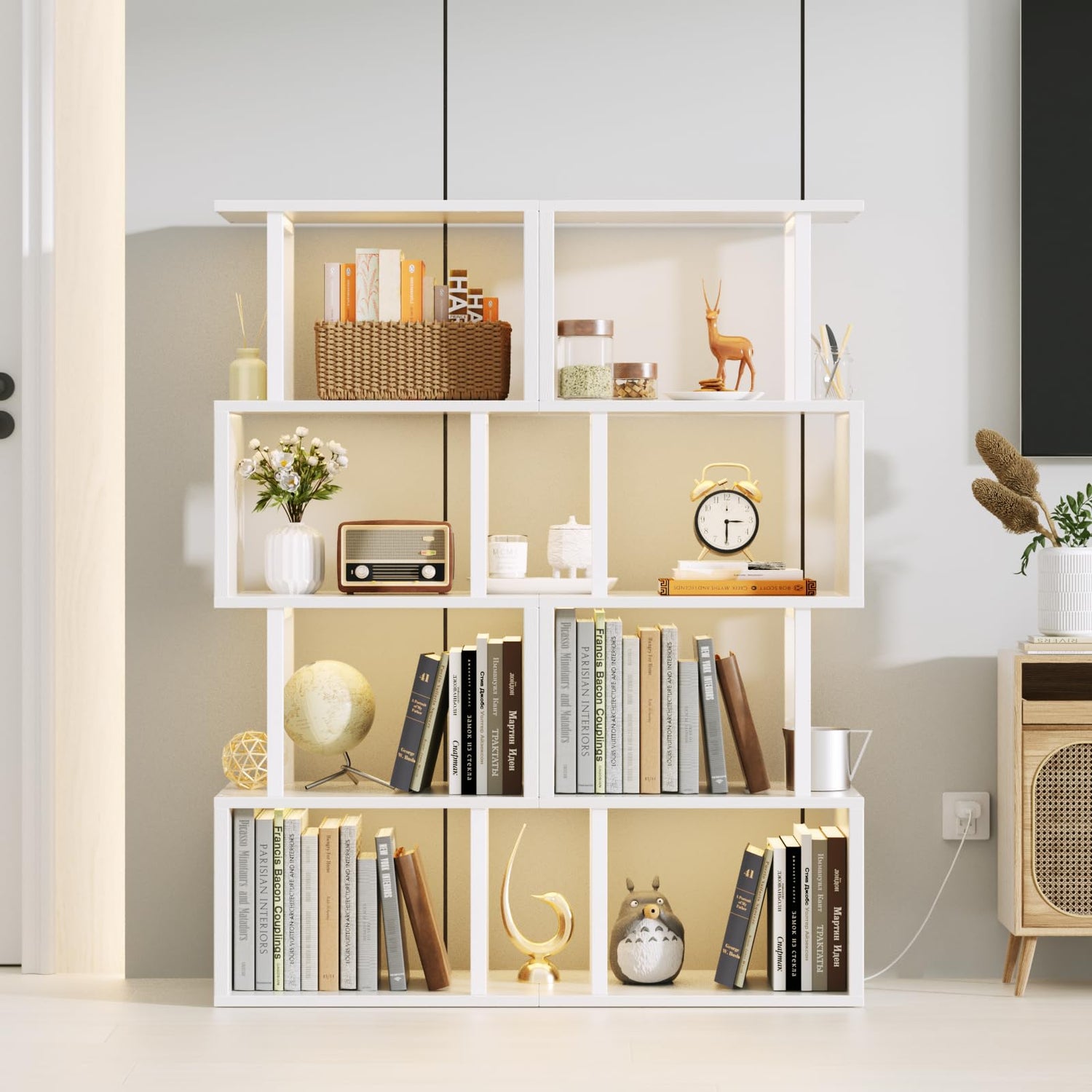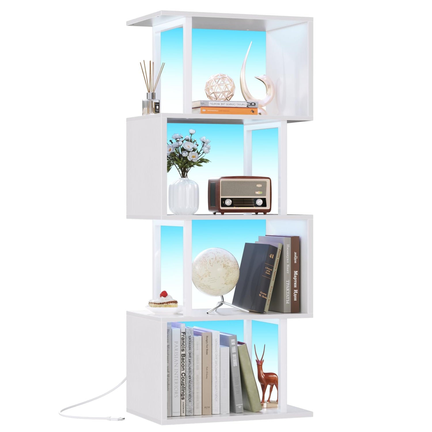 - UNIQUE S-SHAPED BOOKCASE: S-shaped design makes this small led bookshelf a work of art. Modern staggered rectangular design, which increases the load-bearing and more aesthetic. Each of the 5 shelves is divided into 2 compartments, perfect for displaying and storing books, photo albums, plants, collectibles, crafts, toys and all your cute items!