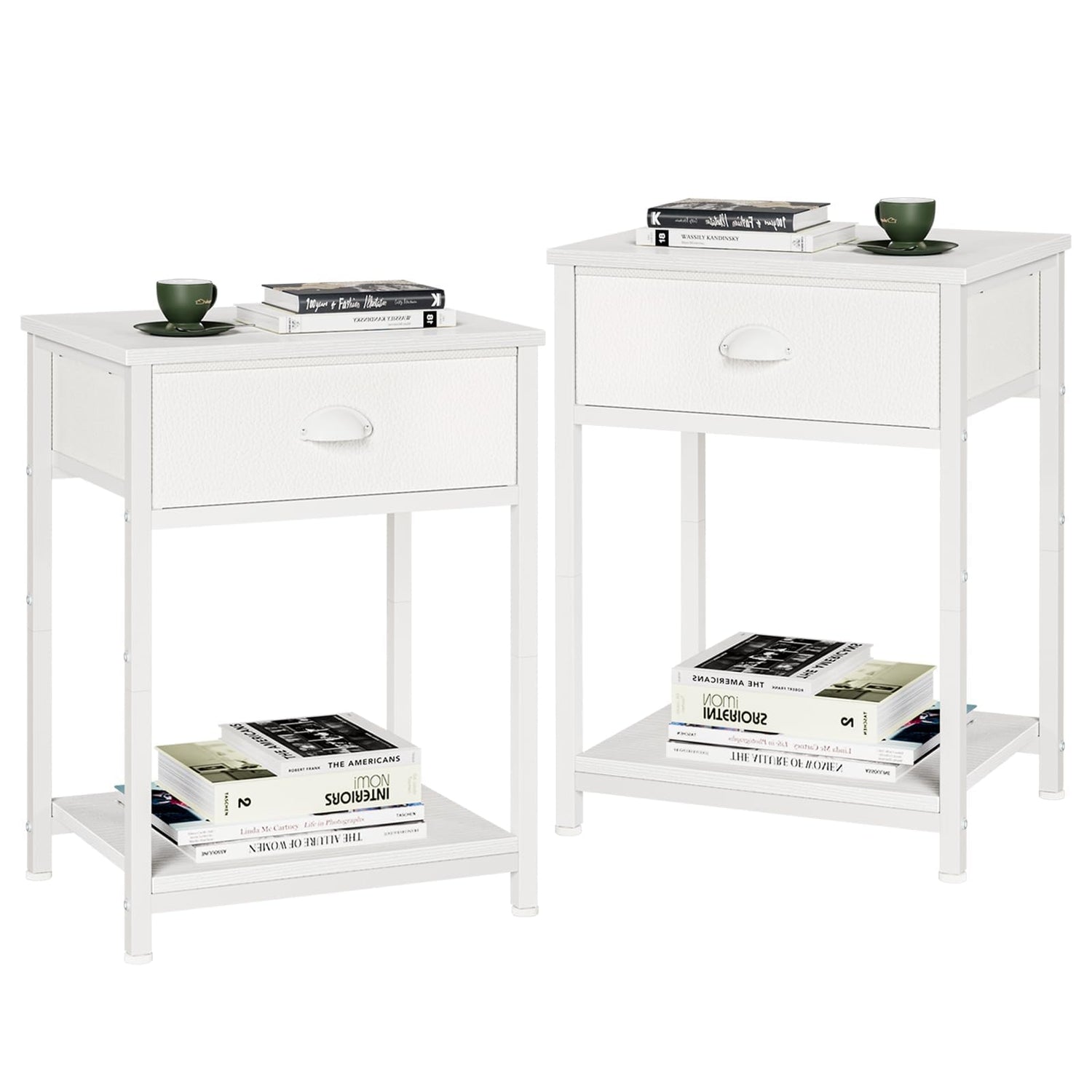 Furologee White Nightstands Set of 2, End Table with Fabric Drawer, Small Side Table for Small Spaces, 2 Tiers Storage Shelves End Table, Bedside Table for Living Room, Bedroom, Dorm