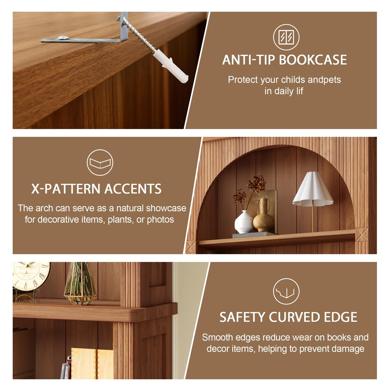 - Timeless Elegance & Modern Flair : This 71-inch arched fluted tall bookshelf masterfully merges mid-century charm with sleek contemporary lines. Rounded edges add organic fluidity while preventing bumps in busy households, and natural wood grain textures infuse warmth. Perfectly complements farmhouse, modern, or transitional decor as a functional art piece