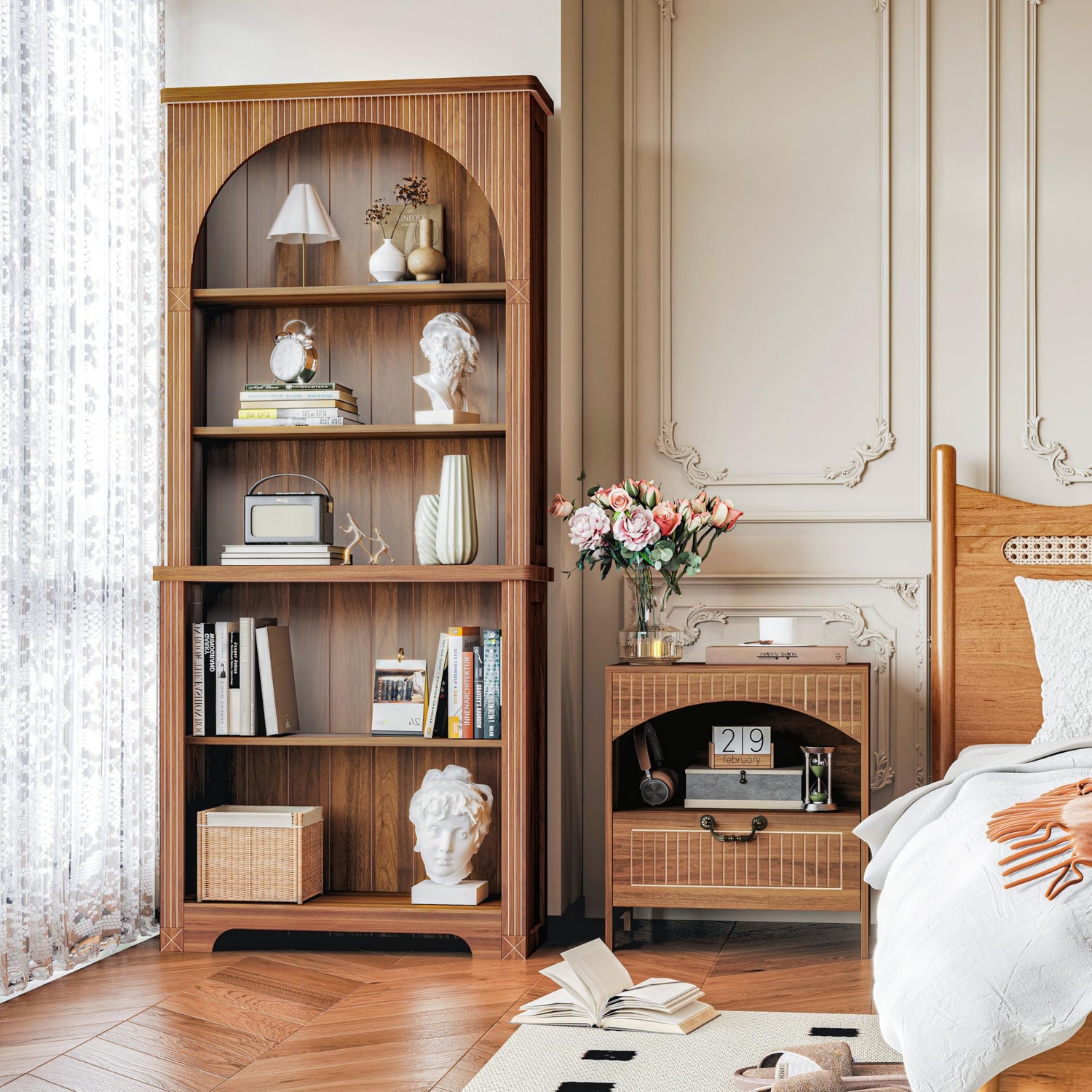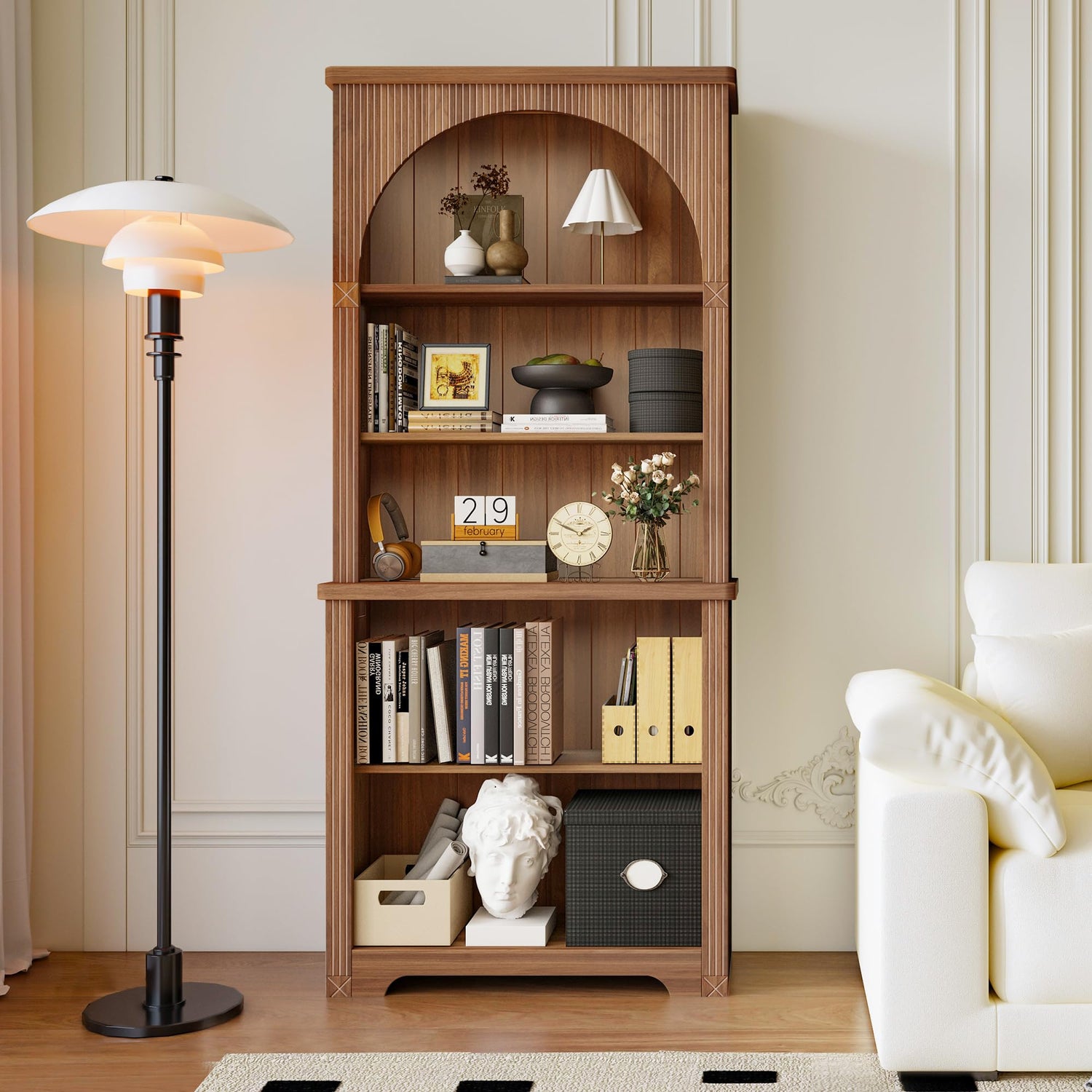 FurSch 71” Tall Arched Bookshelf,Wooden 5 Tier Fluted Book Shelves with Adjustable Shelf,Arched Bookcase Bookshelf for Living Room Home Office