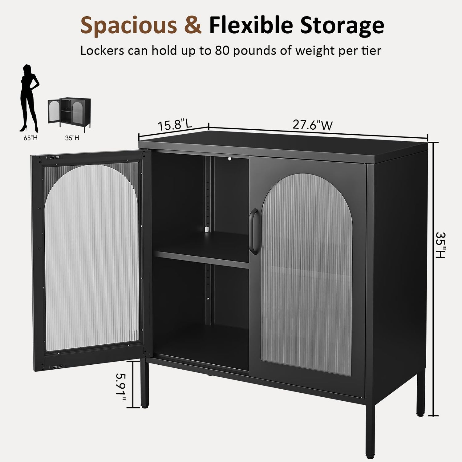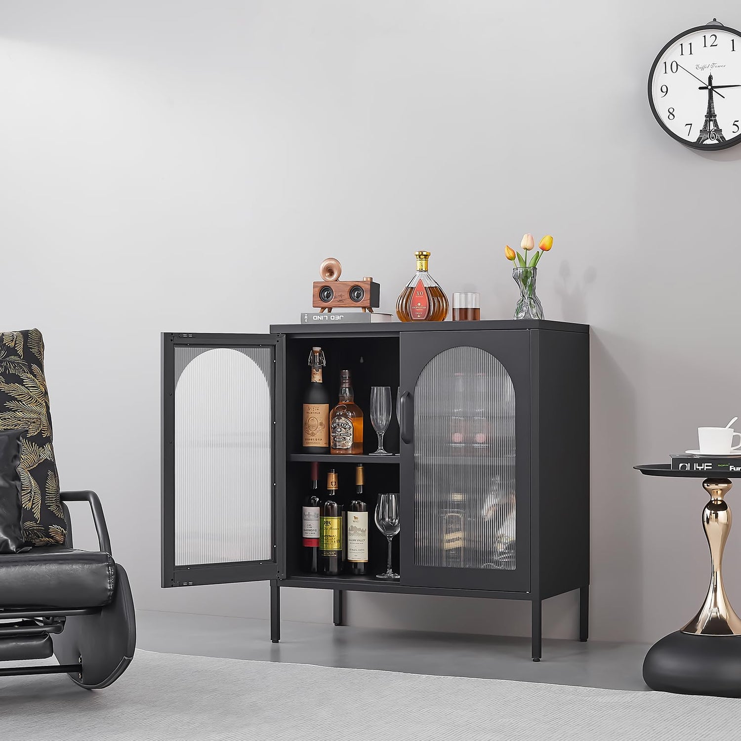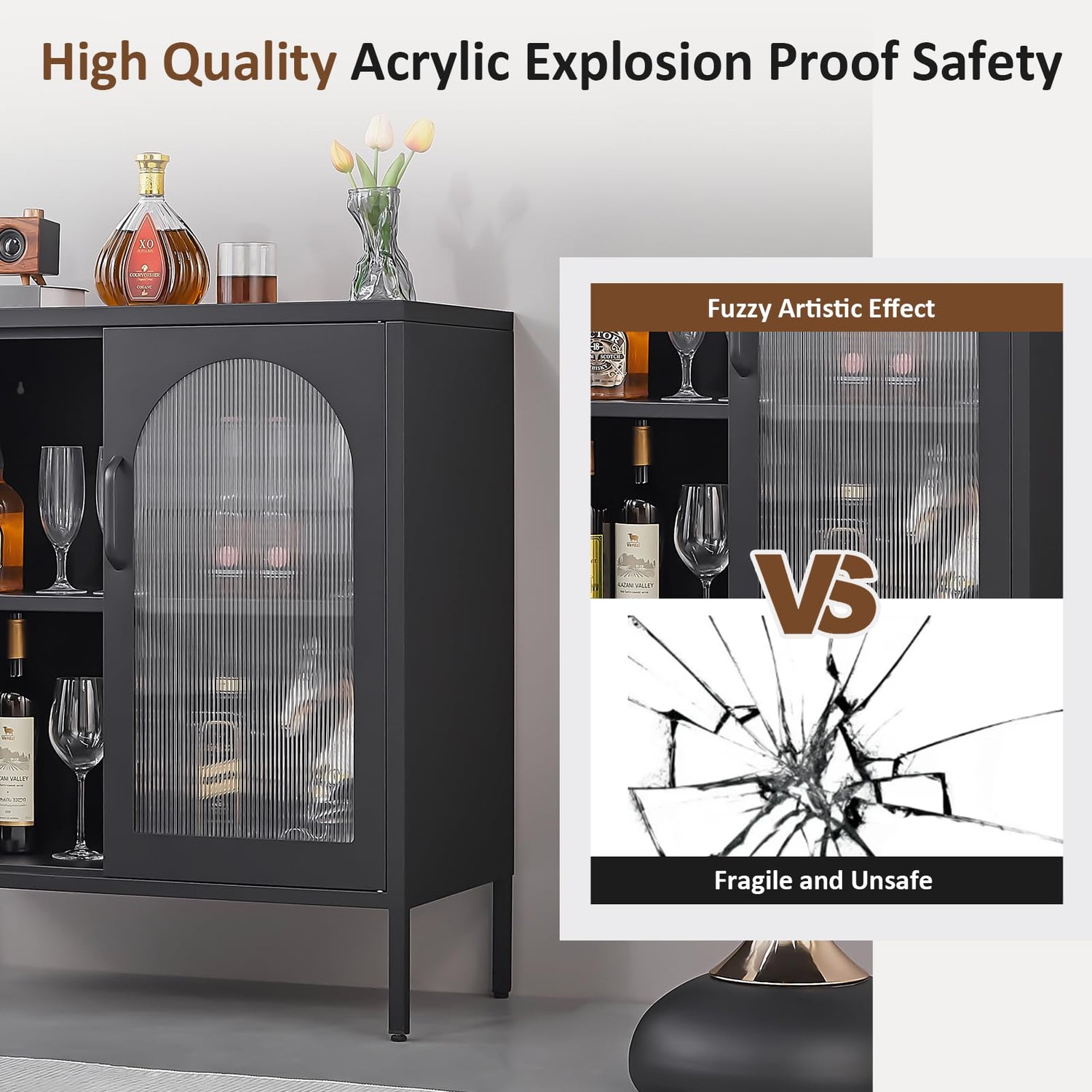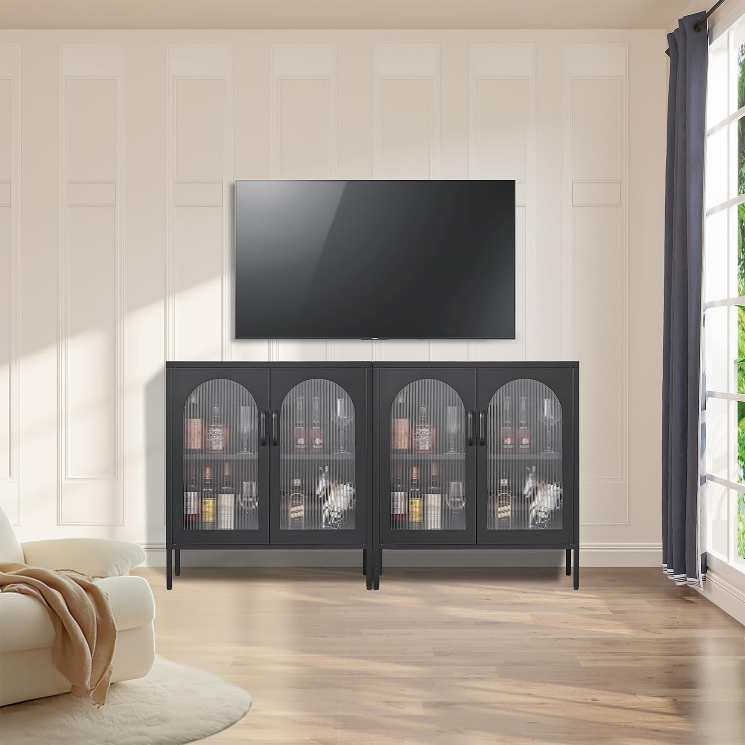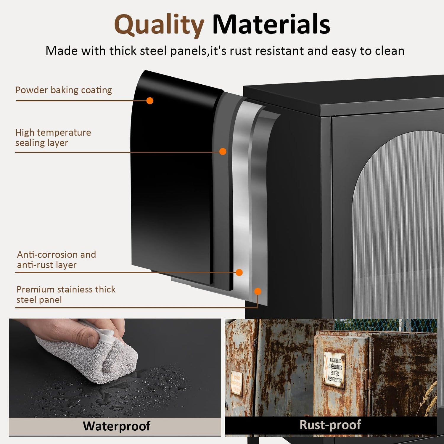 - PREMIUM ARTISTIC DESIGN: This folio kitchen sideboard buffet is powder-coated thick steel plate, which can be 100% waterproof, rustproof and moisture resistant. The doors showcase a unique textured finish that combines artistic appeal with practicality—effectively repelling dust while elegantly displaying tableware collections. The two doors are also equipped with magnetic closures, so they’re easy and a joy to use!