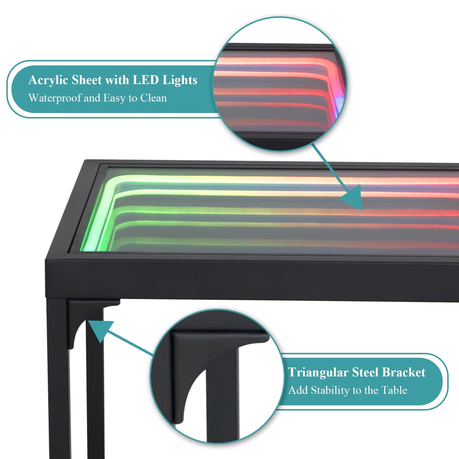 FUSLITE Infinity Mirror Light Table, Coffee Tables for Living Room, with 3D Infinity Illusion Mirror, RGB Side Table, with Tunnel Light, Unique Coffee Table, with Futuristic Decor, for Bedroom, Party