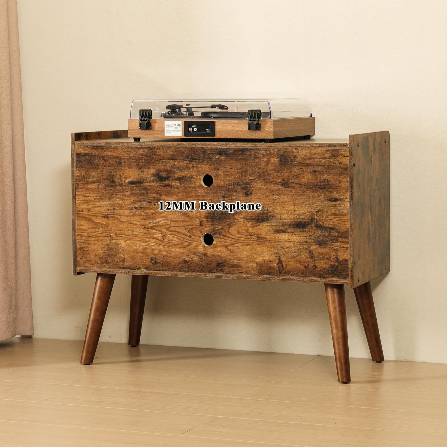 - 【Large Storage and Solid Wood Legs】This record player stand comes with 6 storage cabinets that can hold up to 200 records at a time. The solid wood legs ensure that the record table can withstand up to 200 pounds of weight.