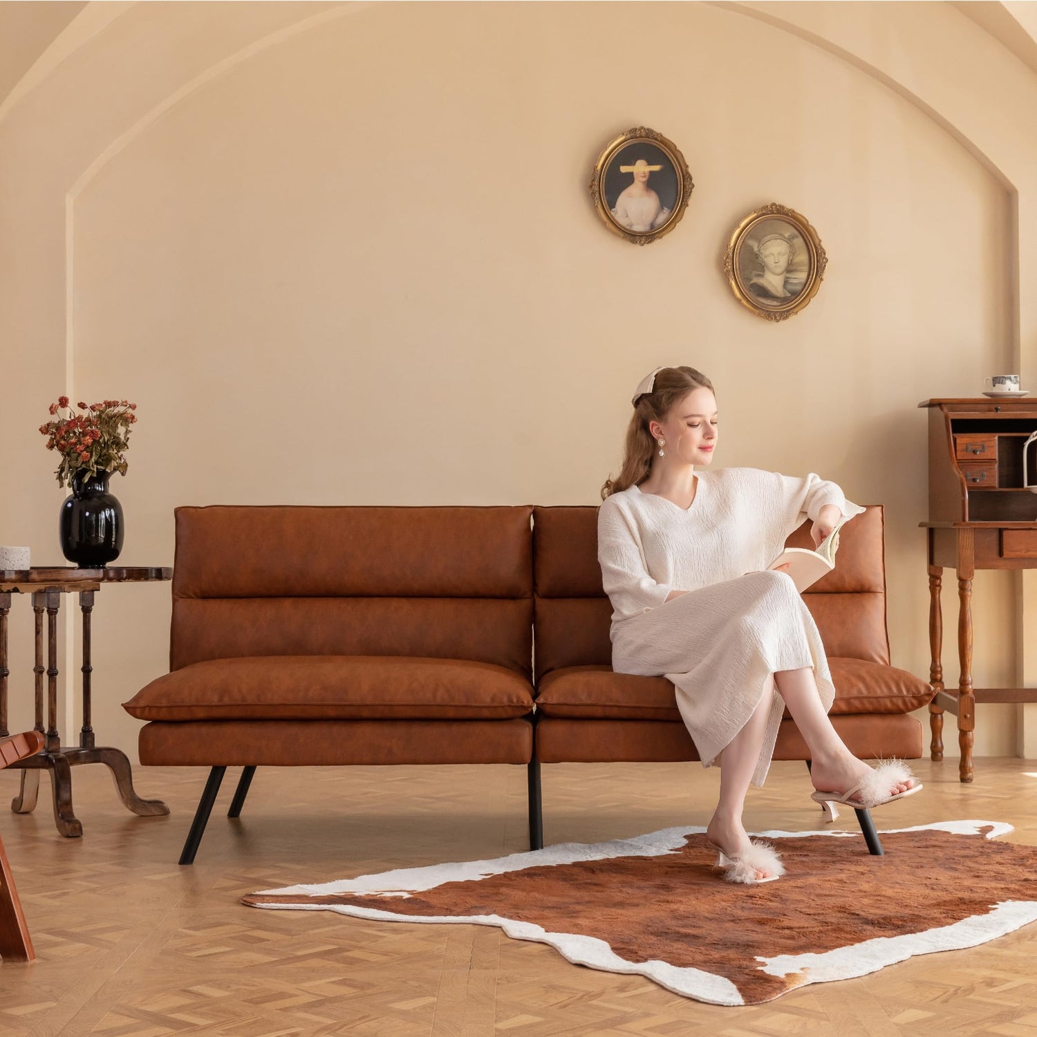 Futon Sofa Bed, Memory Foam Futon Couch with Adjustable Backrest, Multi-Functional Design Convertible Sofa Bed, Space-Saving Sleeper Sofa for Living Room(New Brown)