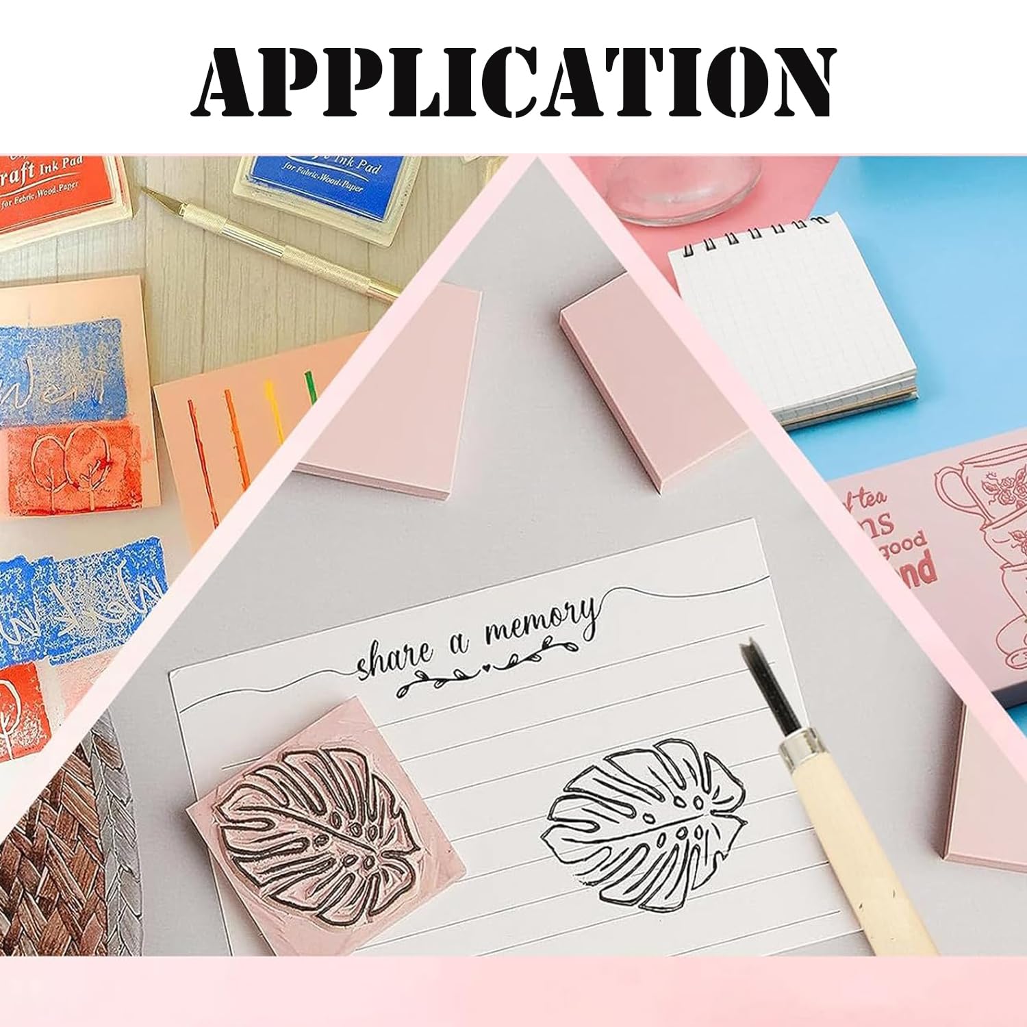 - Versatile Rubber Stamp Making Kit - Works as: Lino Cut Block, Eraser Carving Block, rubber carving block, scrapbooking supplies, and more; Suitable for the inkjet printer, newspaper, and clip art transfer