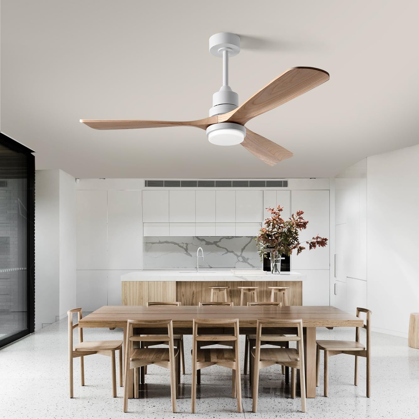 - 【Well-Chosen Solid Wood Blades】We select only the choicest wood for our ceiling fan.The fan blades is made of parasol tree. It is lighter than other wood and can rotate faster at the same power.No deformation or sagging for a long time. The surface is treated with more than 30 workmanship to prevent moisture, Smooth polishing also reduces wind noise.