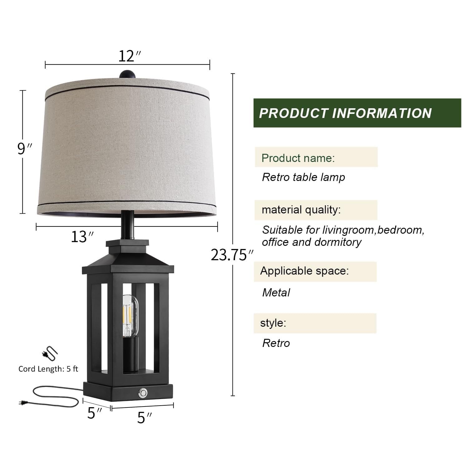G-SAFAVA 23.75" Retro Farmhouse Black Table Lamp for Living Room Bedroom Nightstand Set of 2 Touch Control Bedside Nightlight Vintage Modern Lamp with USB C+A Ports and 2 Light Sources