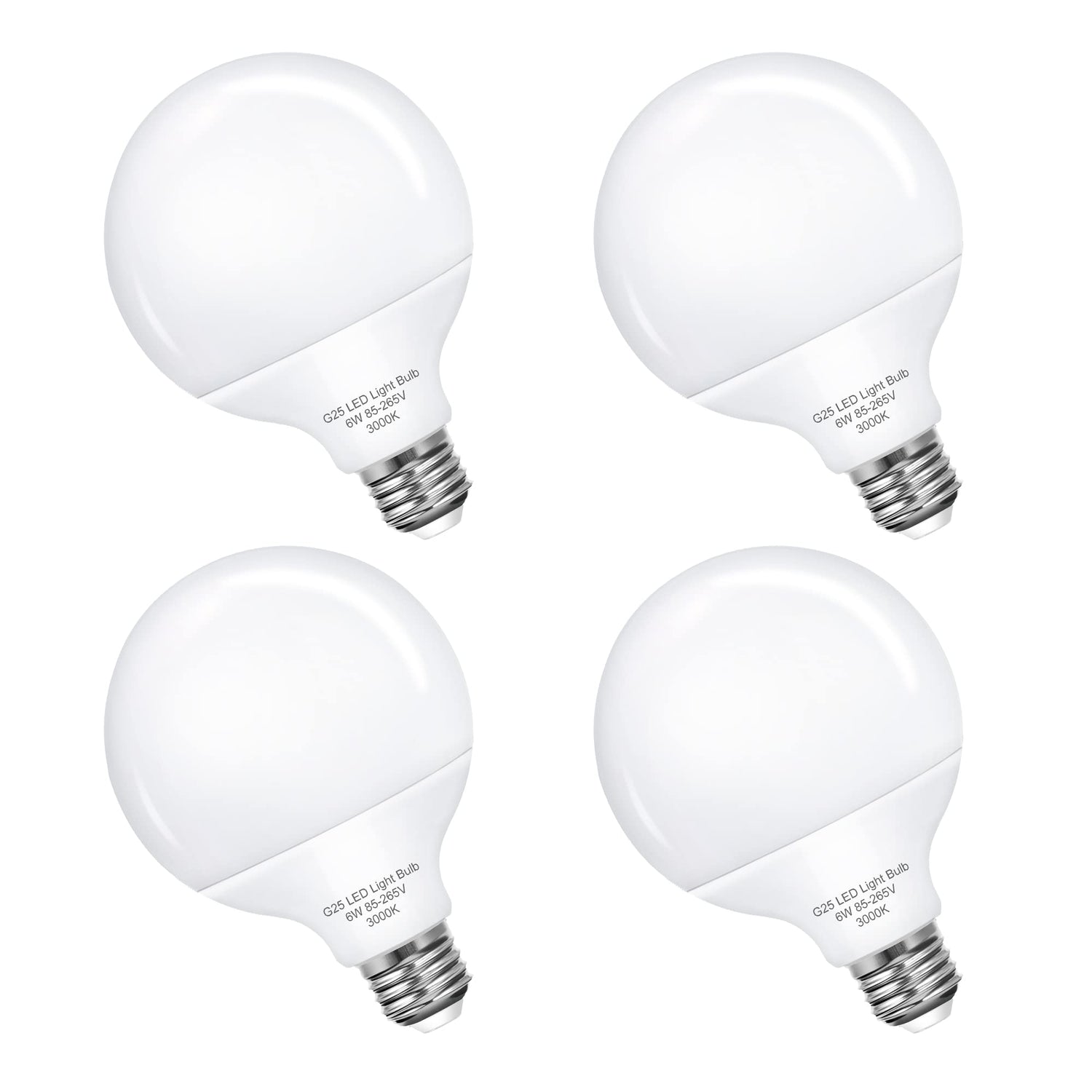 G25 LED Vanity Globe Light Bulb, 60W Equivalent Incandescent Bulbs for Vanity Bathroom Mirror Light Bulb, 3000K Soft White E26 Base Makeup Mirror Lights, Not-Dimmable Christmas Decor Lighting, 4 Pack