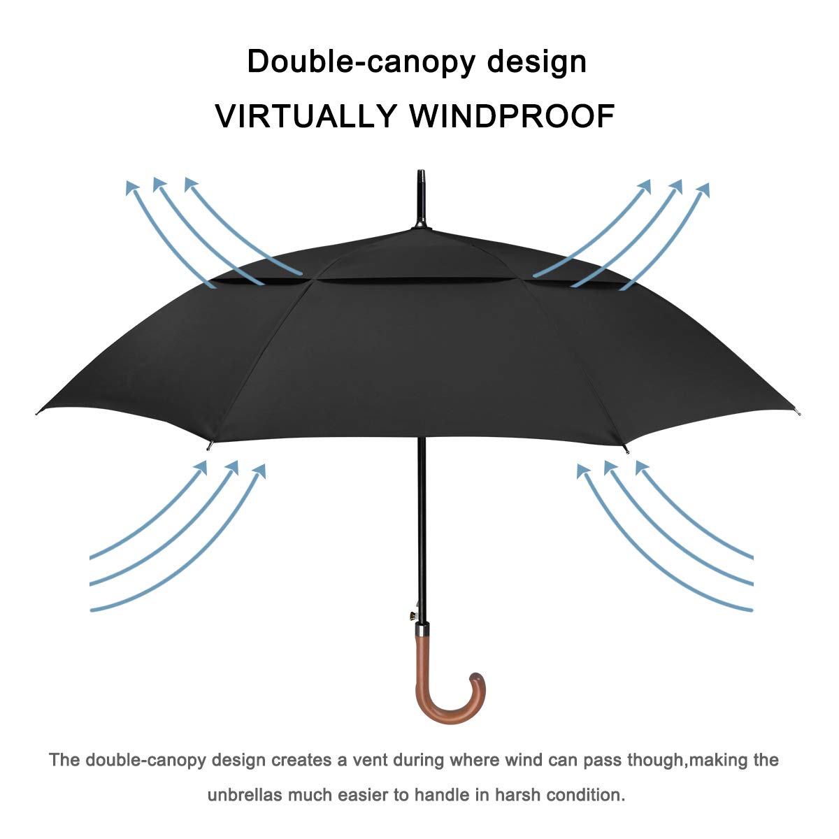 G4Free 52/62inch Wooden J Handle Golf Umbrella Windproof Classic Stick Wedding Cane Umbrellas, Auto Open Cane Hook Handle